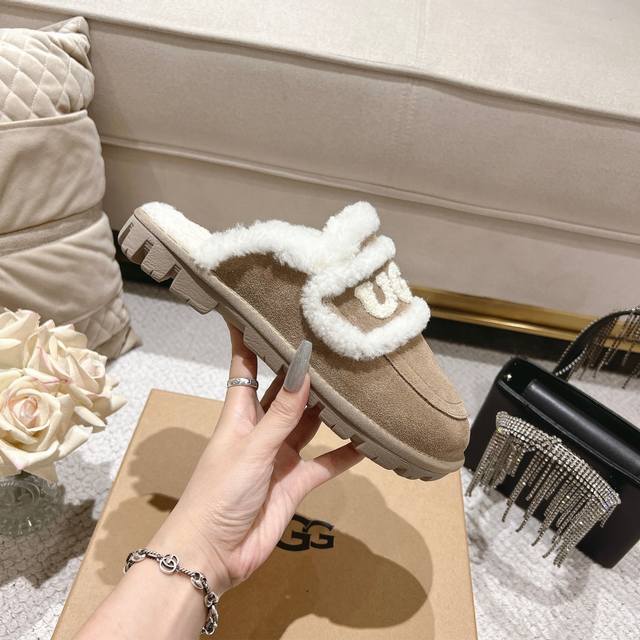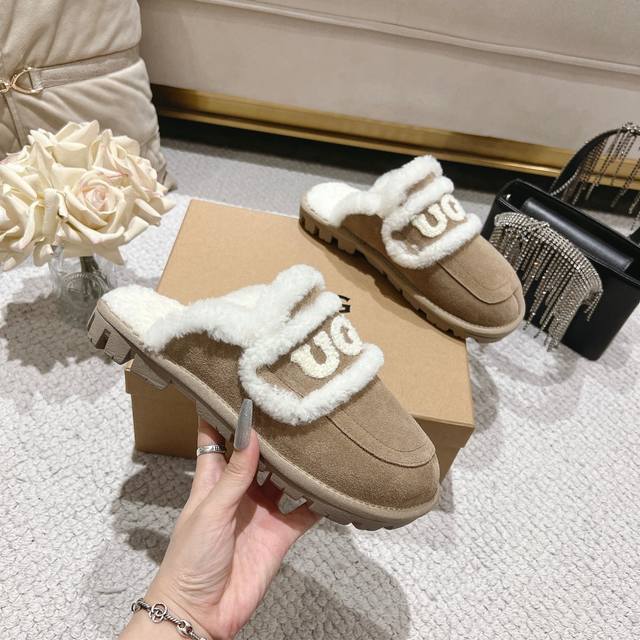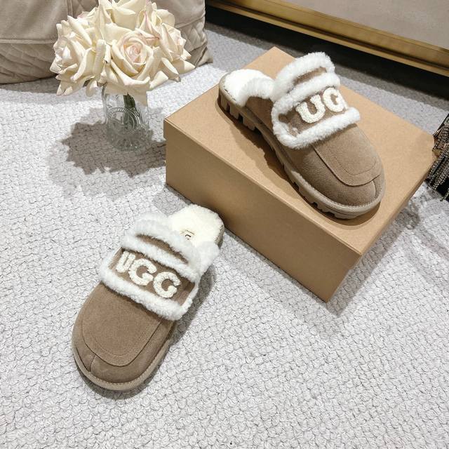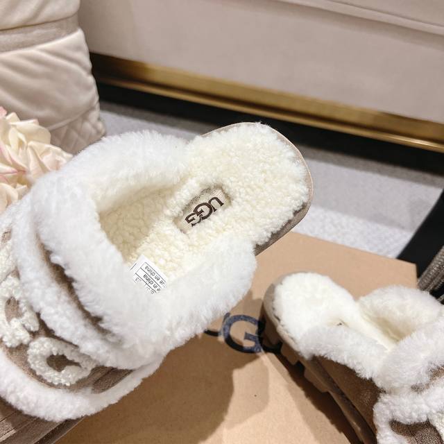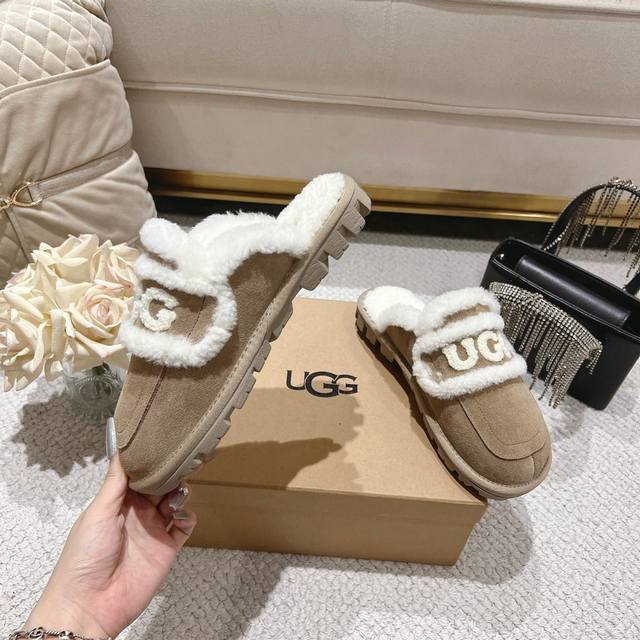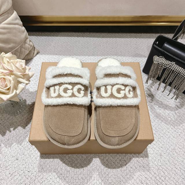 Sand-colored DDD Ugg Logo Slippers are so popular! DDD The chubby, round toe shoes with wool trim and logo are irresistibly cute. They're so lightweight you could practically jump while walking! DDD Four colors: chestnut, coffee, sand, champagne brown DDD Size: 35-40 DDD