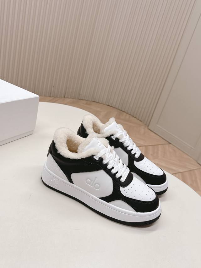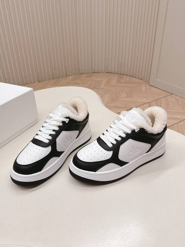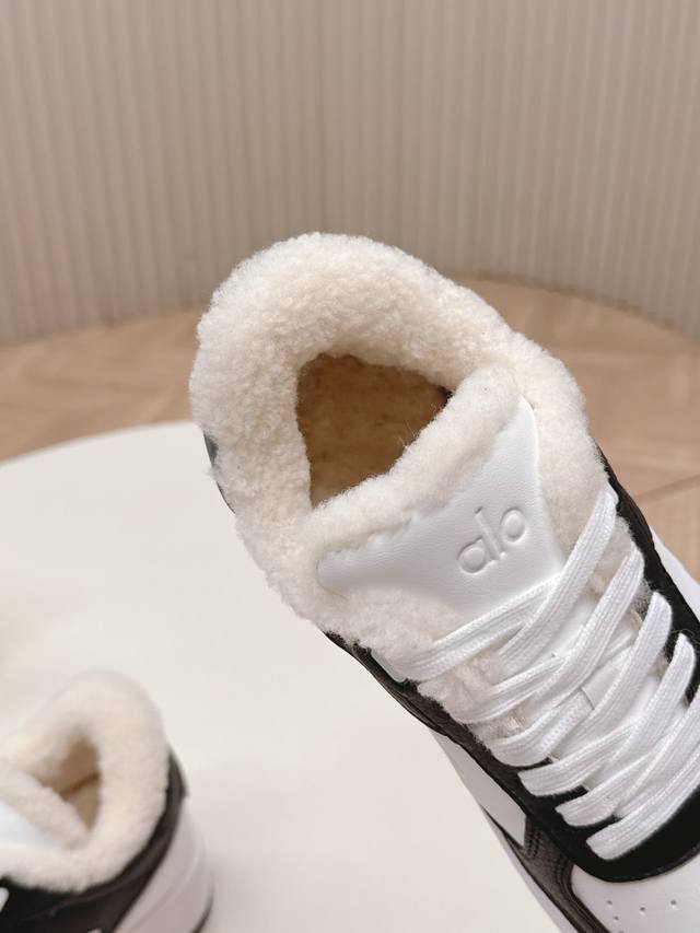 Selling Alo brand niche trendy white sneakers with wool uppers, featuring a color-blocked design, thick sole, comfortable and casual fit. Super versatile and incredibly comfortable! Despite the thick sole, they're not heavy at all! Very lightweight! Looks even better with socks! Also a celebrity-recommended style