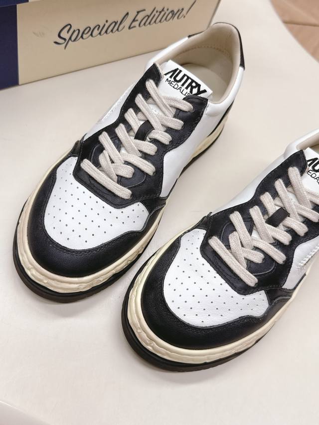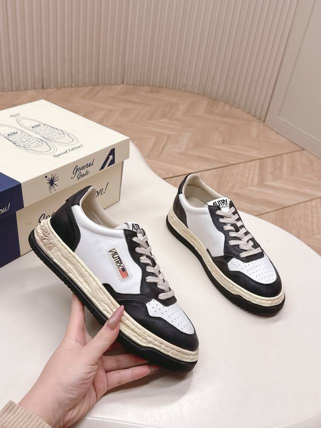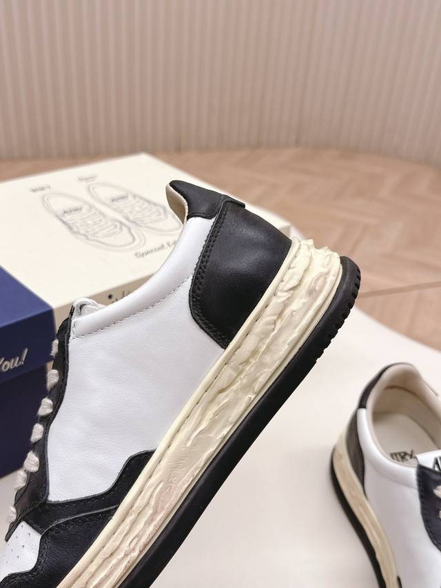 Autry shoe features simple lines and understated details. The thick, yellowed sole and upper tag are its classic hallmarks. The toe design is also quite three-dimensional, not too flat, making the whole shoe shape very attractive. The distressed yellowed sole is 3.5 cm thick, giving it a retro feel, but it's not stiff at all, soft and elastic to the foot. Our version is made of calfskin leather, which is soft, comfortable, and stylish. It's very comfortable to wear and is a must-have white sneaker for 25 years. Highly recommended.