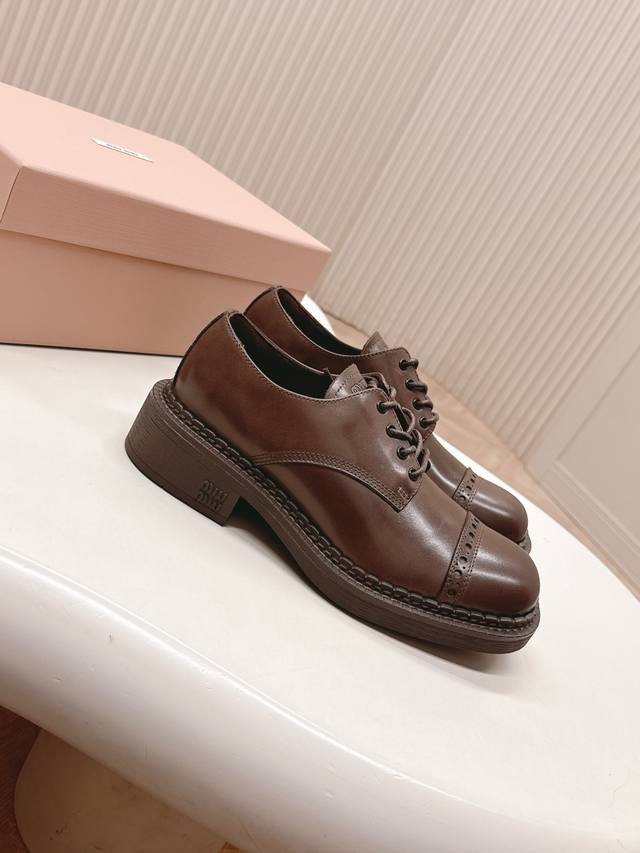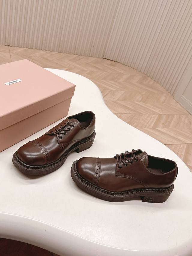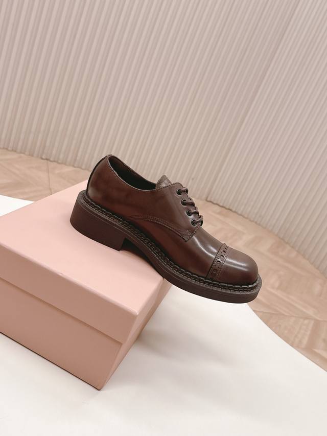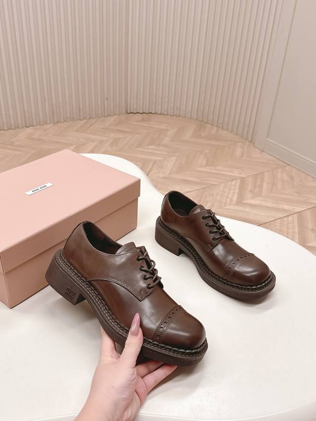 Selling Miu Miu 2025 Fall/Winter New British Style Leather Shoes