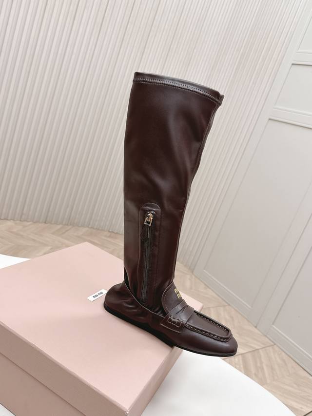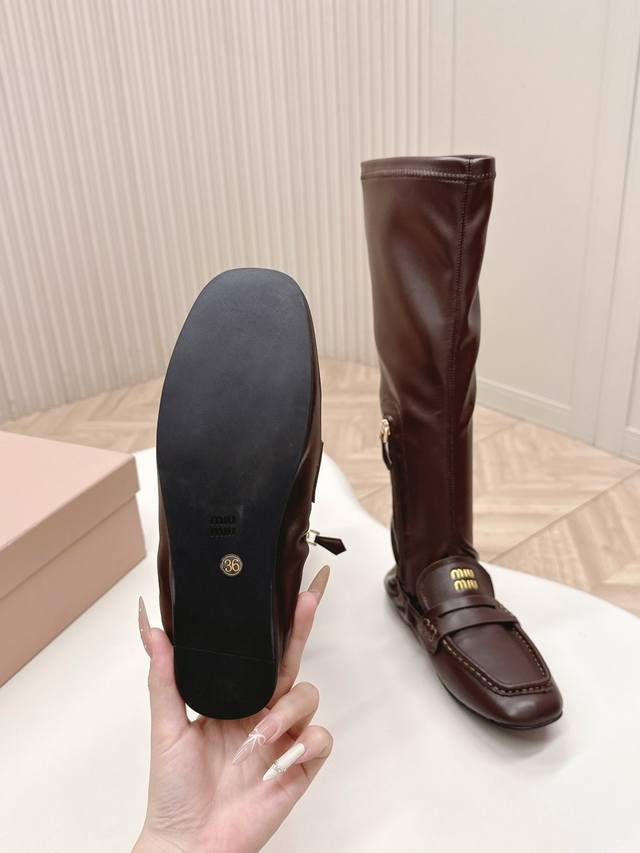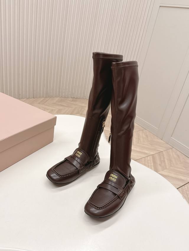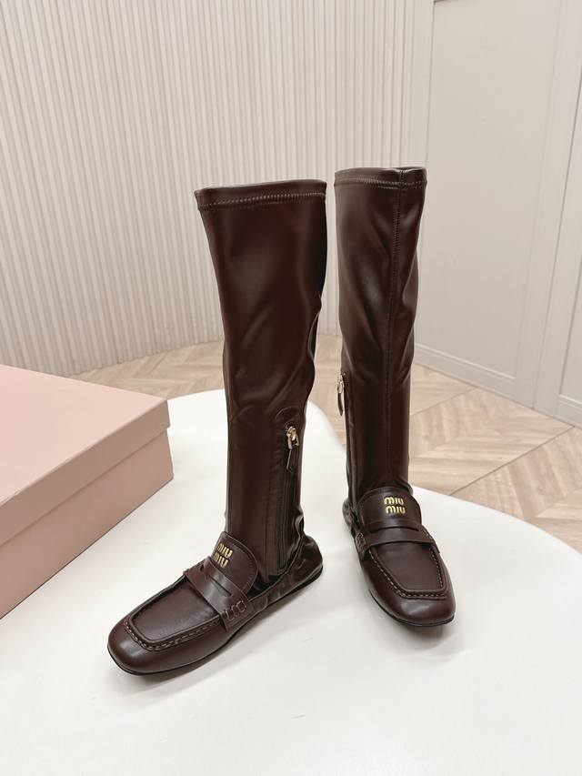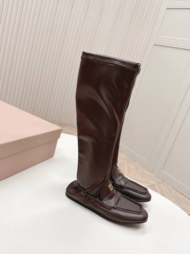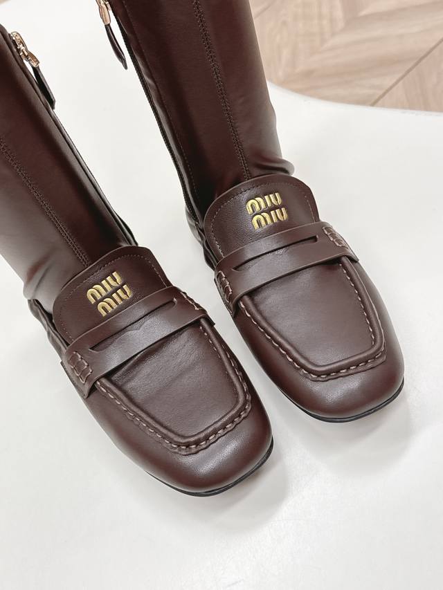 Selling Miu Miu 25 New High-Top Loafers with Patchwork Stretch Leather Boots. Super slimming and bold patchwork design, a futuristic and classic collision reconstructing a casual yet luxurious style. Full of vitality, art, and freshness, these shoes are incredibly comfortable and feel great on the feet. Stretch leather upper, cowhide lining, sheepskin outsole. Original fit. Sizes: 35-40. (DDD)