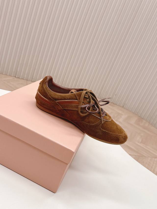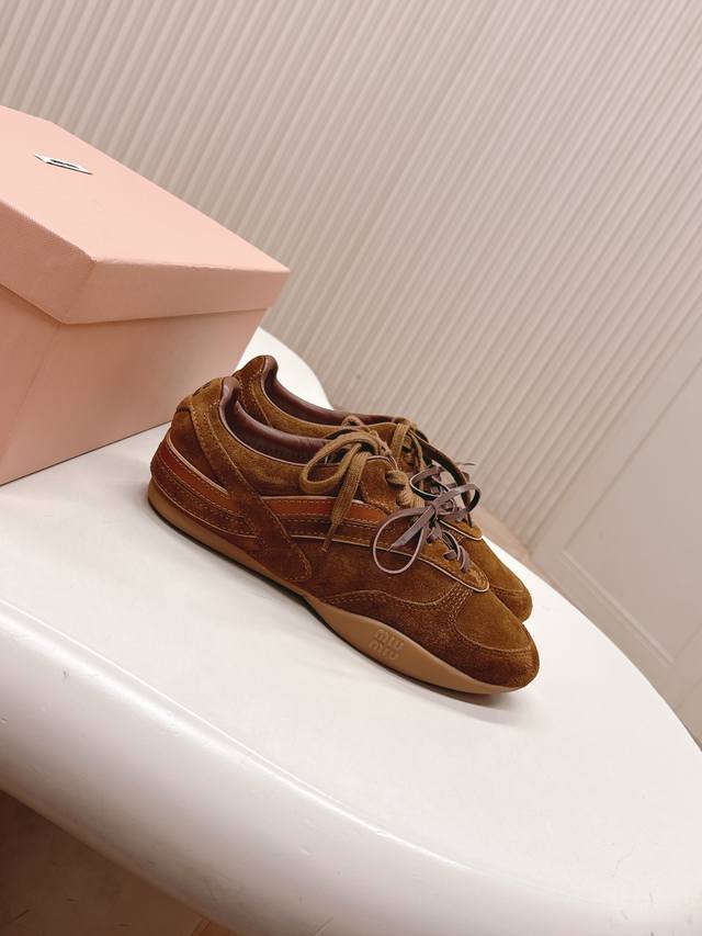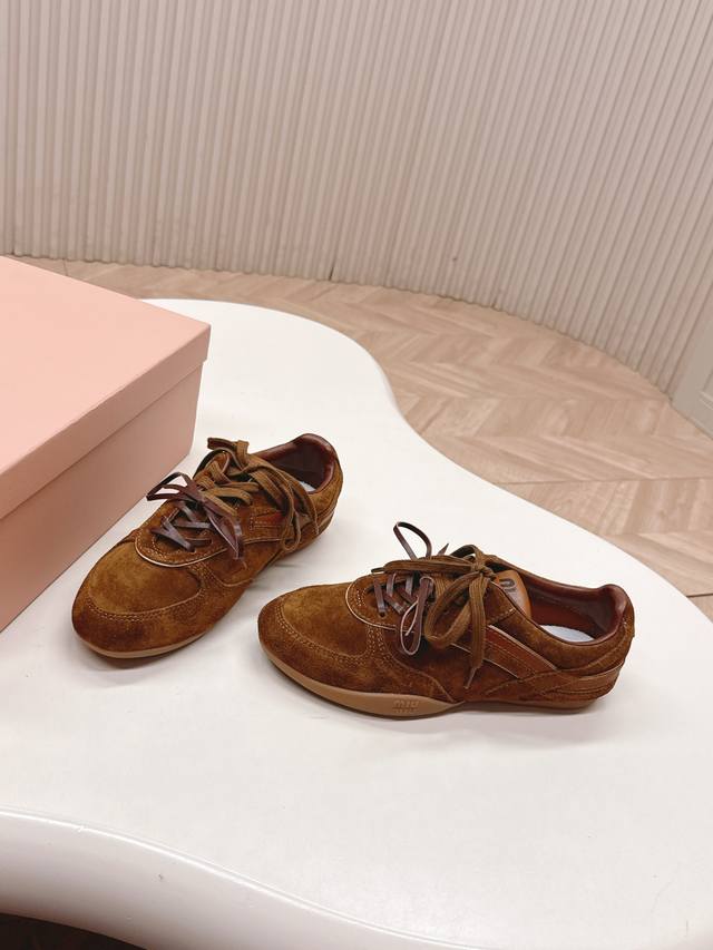 Selling the latest Miu Miu American retro style casual German training shoes with sheepskin lining. A must-have for stylish and trendy sneakers! Distressed and fashionable, simple yet sophisticated, easy to match, and very comfortable. A must-have of the year, this latest runway style athletic dad shoe has been all over the internet by bloggers both domestically and internationally. A must-have on Xiaohongshu (Little Red Book), retro yet fashionable, and looks amazing on ! Simple athletic design, highly recognizable tongue, creating a relaxed and sweet casual style. Full of presence, easy to match. Mainstream double-lace design, featuring a fashionable design. Made with imported cowhide suede and mesh material, with a mixed sheepskin lining, original private mold outsole. Size: 35-40.