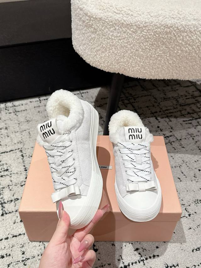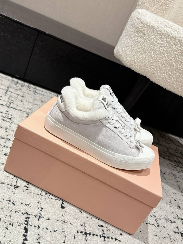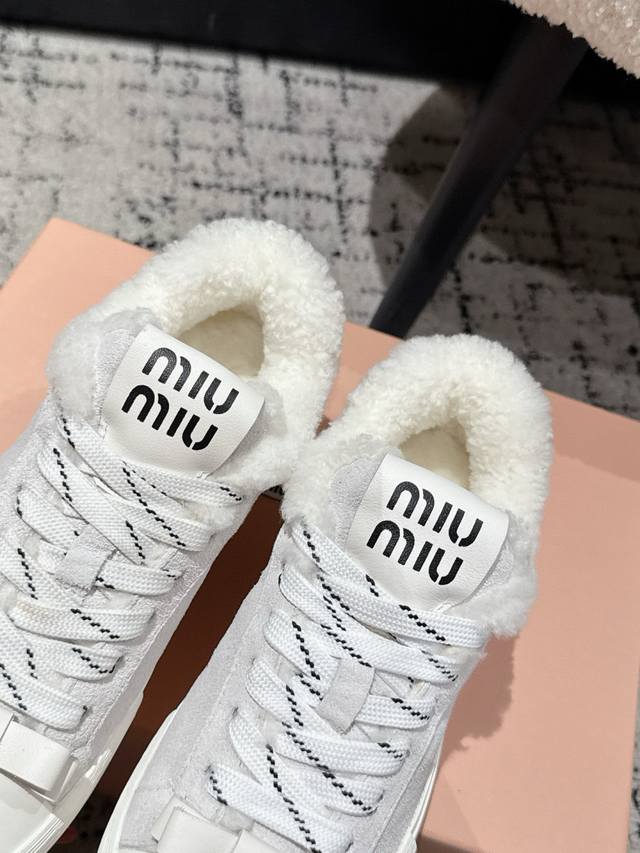Sheepskin Lined with Wool Lining DDD Miumiu 25 Autumn/Winter New White Sneakers Wool Lined Thick-Soled Casual Shoes DDD Simple design, ultra-lightweight original mold sole, perfect comfort DDD Easy to wear and match DDD Size: #35-41 40 41 Made to order, no returns or exchanges DDD