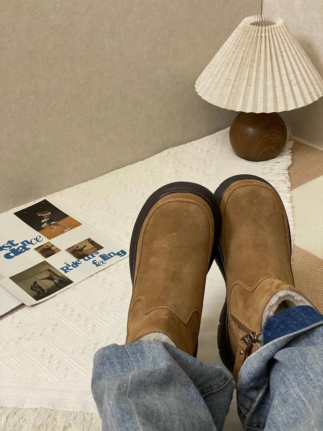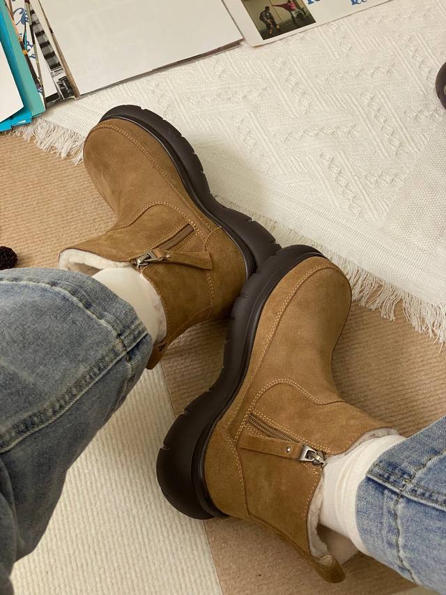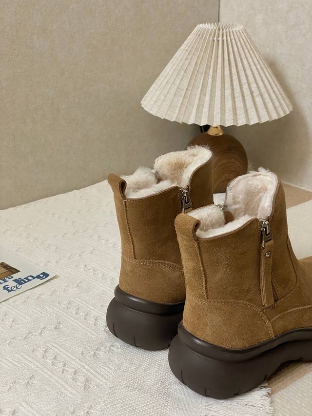Sheepskin lining + top-grain cowhide upper DDD 1.5cm golden thickness wool locks in warmth and prevents sweating DDD Still warm to the core even at -20