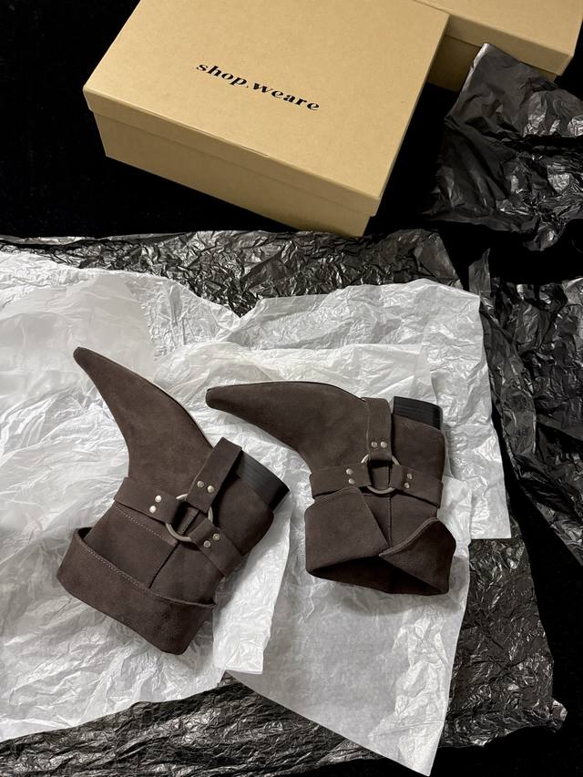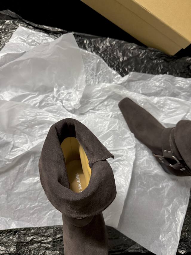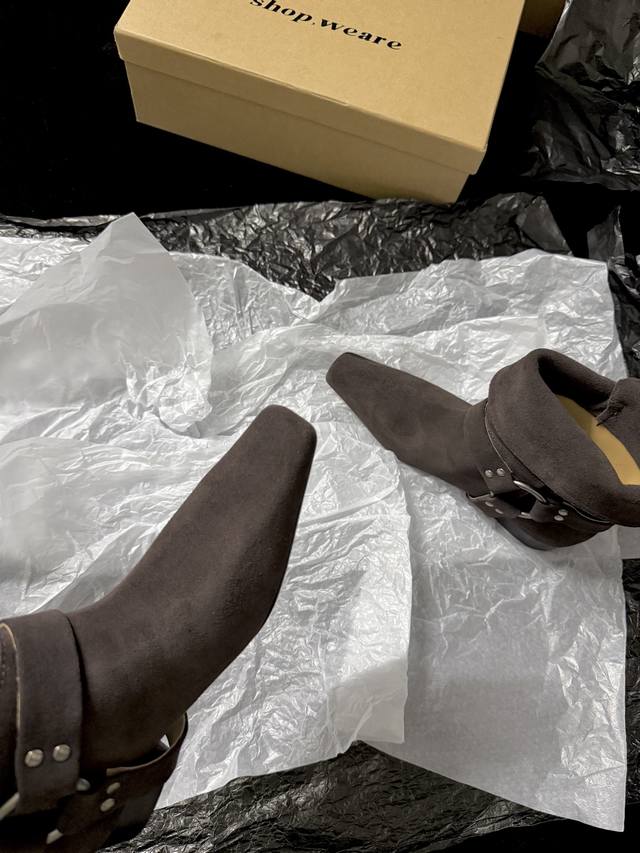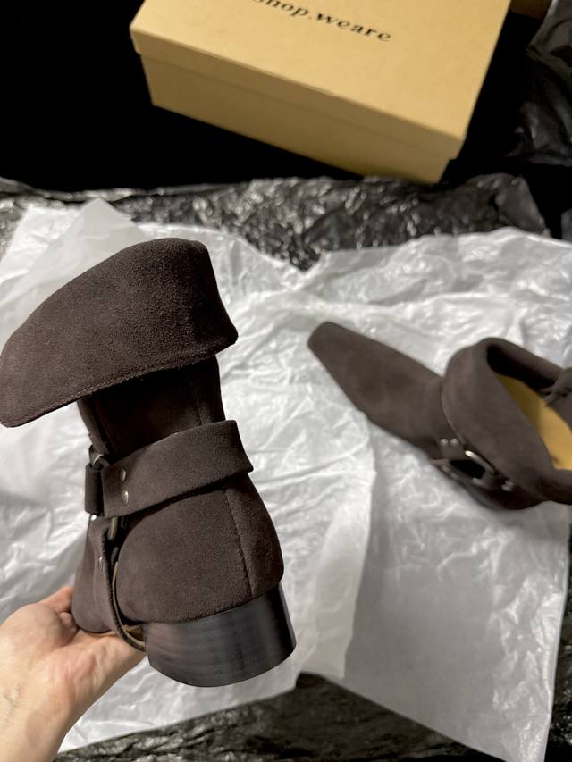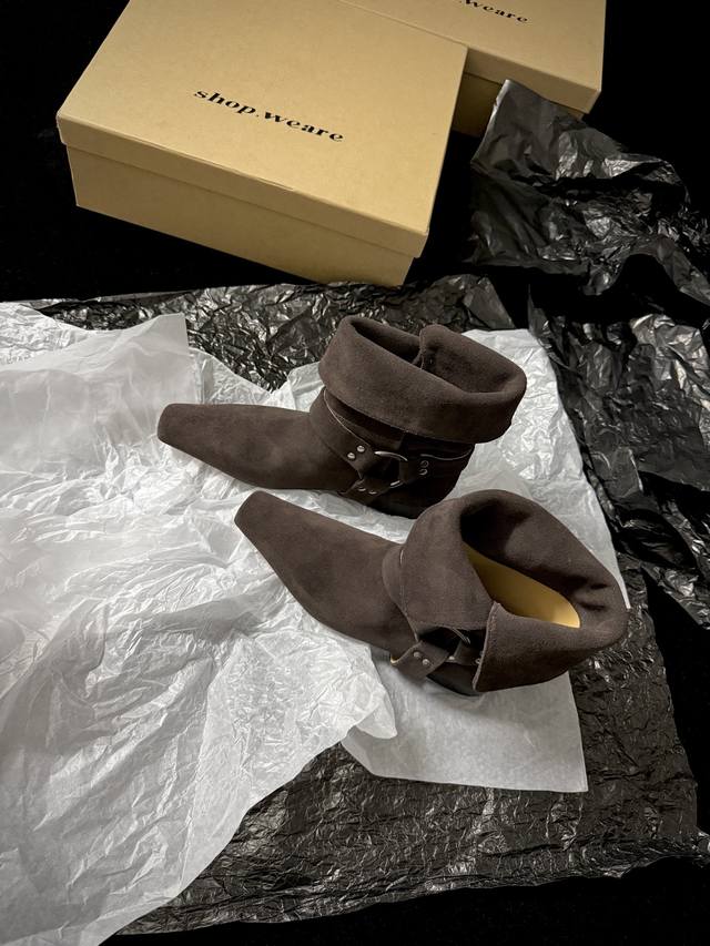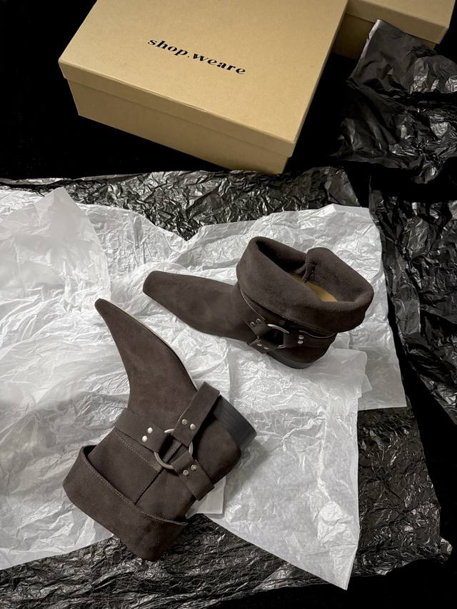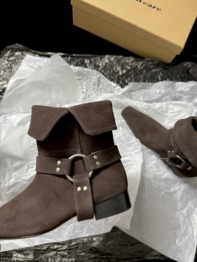 Square-Toe Riding Boots: These boots combine Western charm with a retro-chic minimalist style. They feature metal buckles, are foldable for versatile styling, and are highly recommended for pairing with various outfits.
