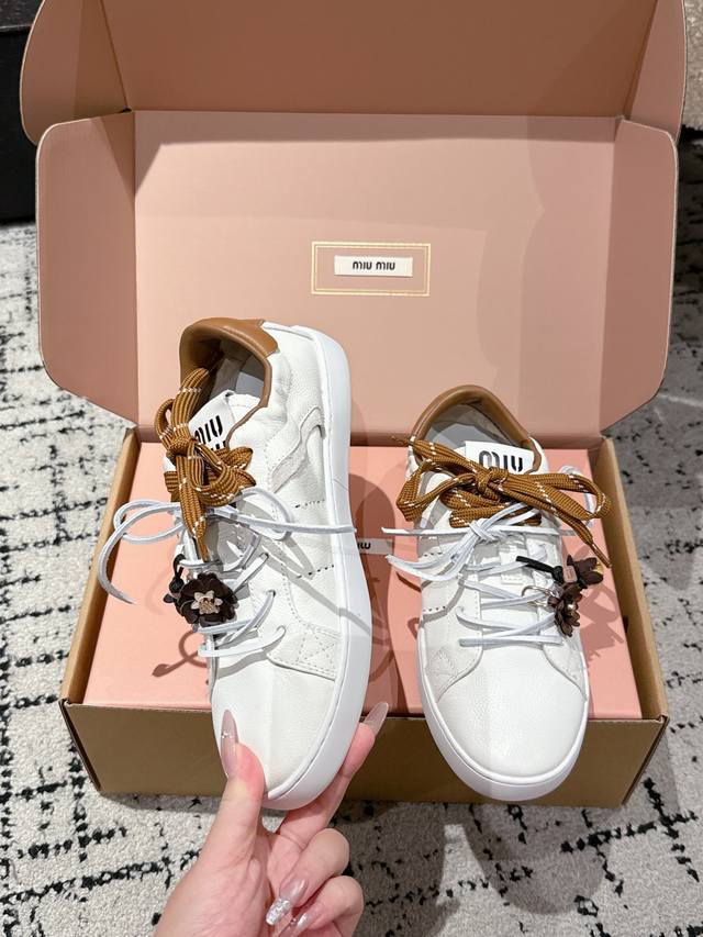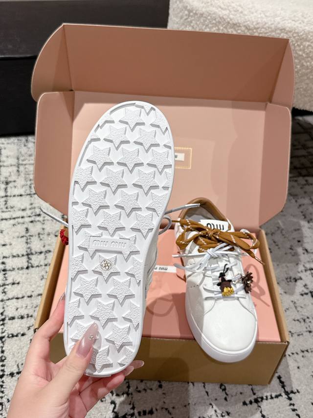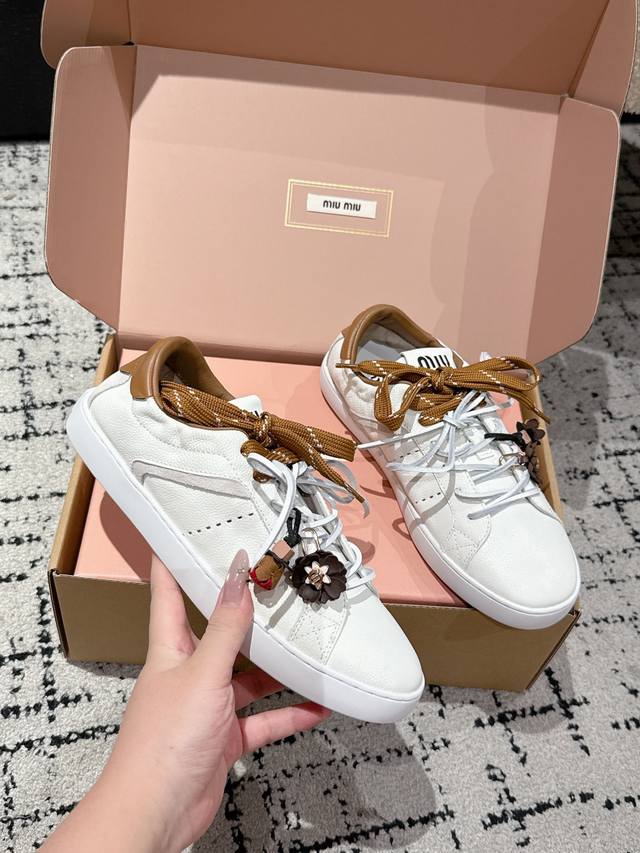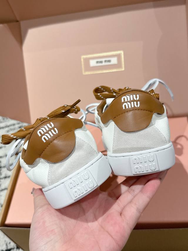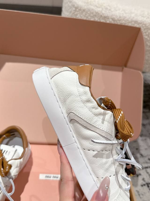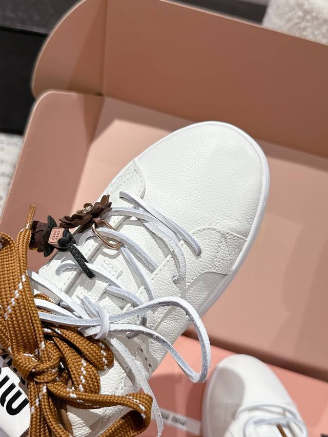 Miu Miu Miu 25 new British-style lace-up white sneakers