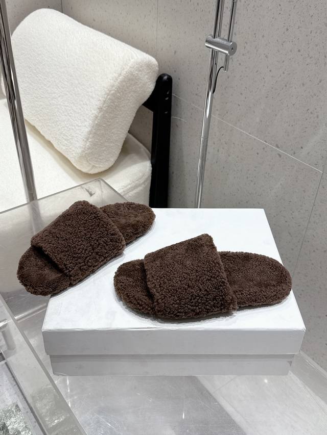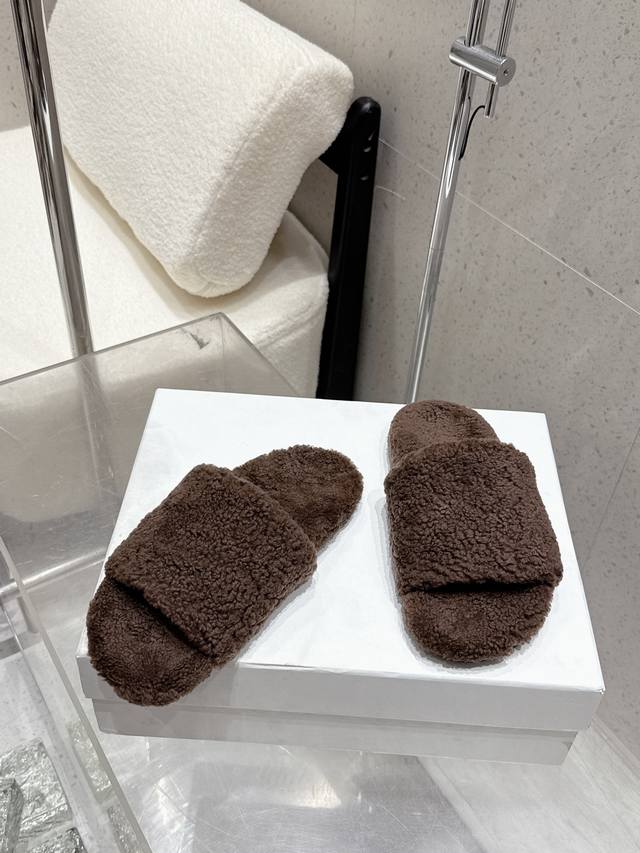 Therow 2025Ss new autumn and winter The Row cute lambswool slippers. Fashionable and versatile, casual and trendy wool slippers for autumn and winter.
