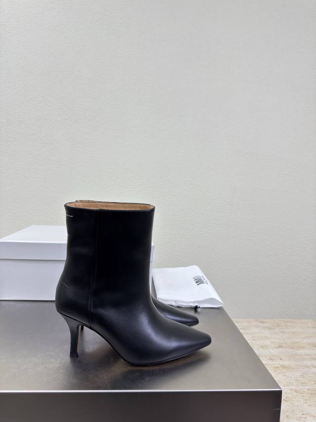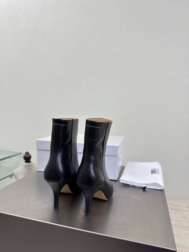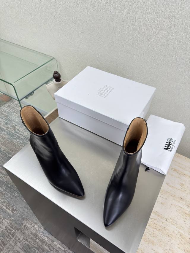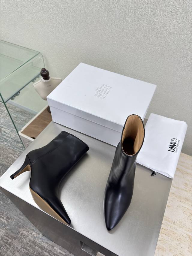 Short boots, pointed toe, slip-on, latest style, Maisonmargiela Mm6, black calfskin lining, Bengal cowhide lining, hot arrival! So tempting! Vibrant and colorful, exuding youthful charm! A must-have fashion item, simple yet stylish, a top choice for runners, a must-have for fashion and youthful style, casual and genuine feel. Simple and sophisticated design incorporating the unique Mm6 logo, suitable for everyday wear, casual vacations, and all-around comfort. Italian genuine leather outsole, split design, original materials, guaranteed high quality. Available in sizes 35, 36, 37, 38, 39, 40, and 40 (custom sizes).