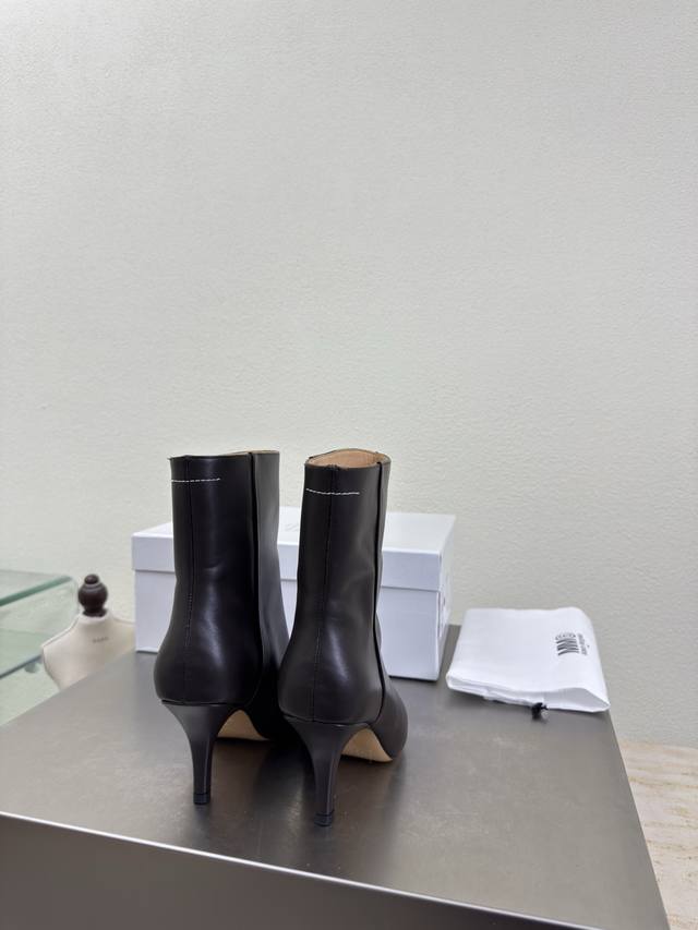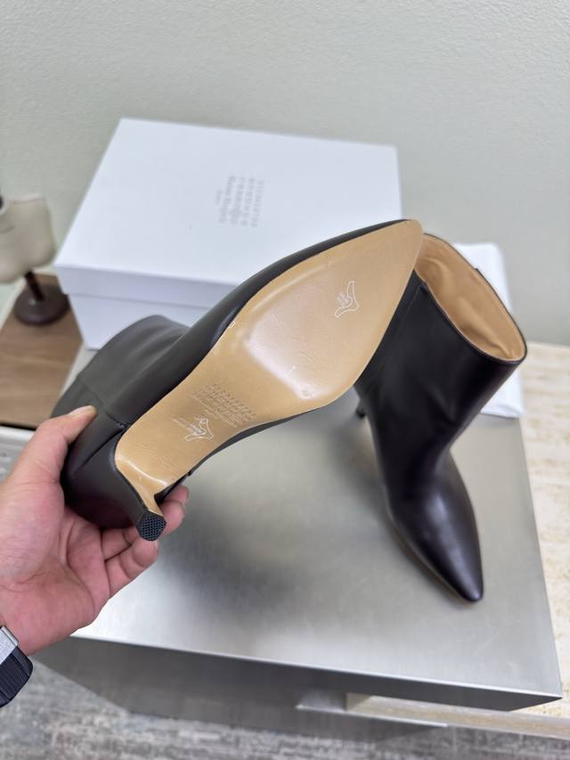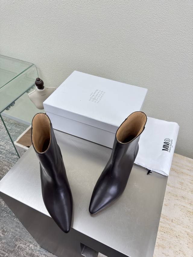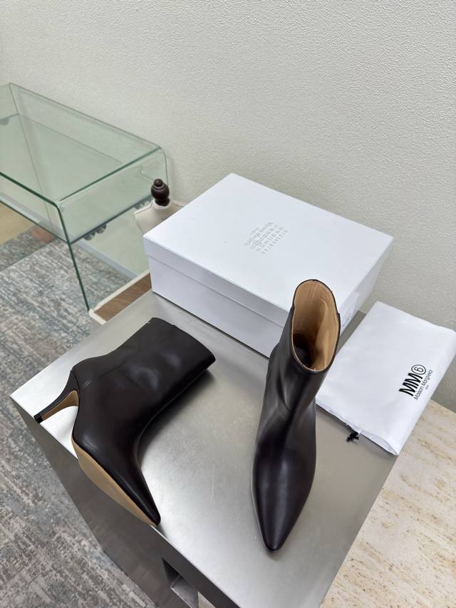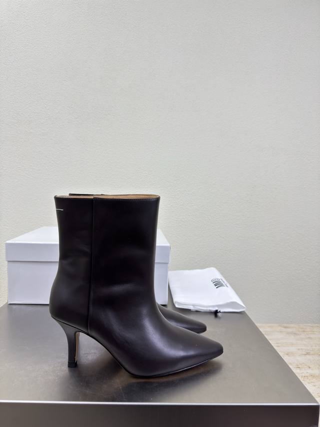 Short boots with pointed toes, latest style, Maisonmargiela Mm6, coffee-colored calfskin lining, Bengal cowhide lining. A hot new arrival! So tempting! Vibrant and colorful, exuding youthful charm! A must-have fashion item, simple yet stylish, a top choice for runners, a must-have for a youthful and fashionable look, casual and genuine. Simple and sophisticated design incorporating the unique Mm6 logo, suitable for everyday wear, casual vacations, and all-around comfort. Italian genuine leather outsole with split design. Original materials, guaranteed quality. Available in sizes 35, 36, 37, 38, 39, 40, and 40 (custom sizes).