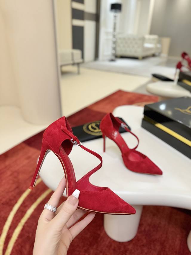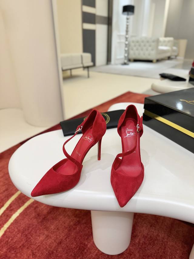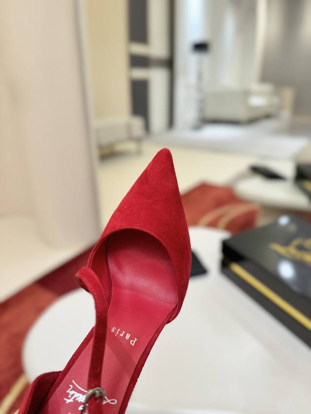Side-strap Shoes W. DDD Maison Christian Louboutin. This shoe features a 100mm stiletto heel that reveals the iconic Loubi red sole, crafted from Fever Red sheepskin. The shoe has an elegant slingback with an asymmetrical strap trim and a padded insole. It features a new "Eternal" red sole. DDD Size: 34-44 DDD 34, 40, 41, 42. Custom orders are non-refundable and non-exchangeable, 43, 44, 40 DDD Heel height: 10cm DDD Color: Red and Black DDD