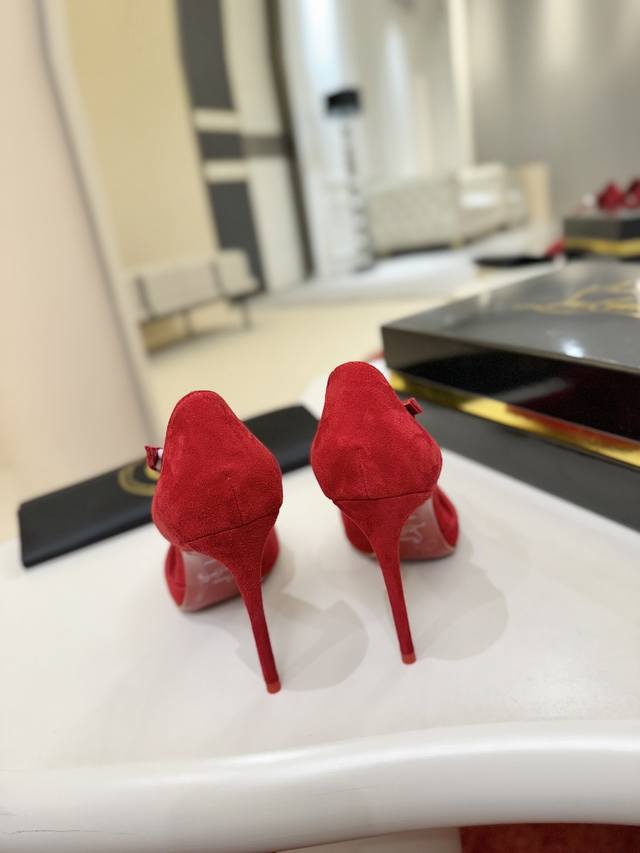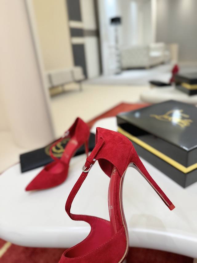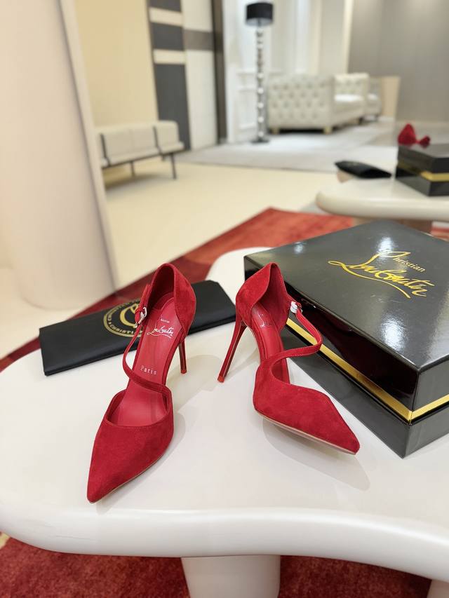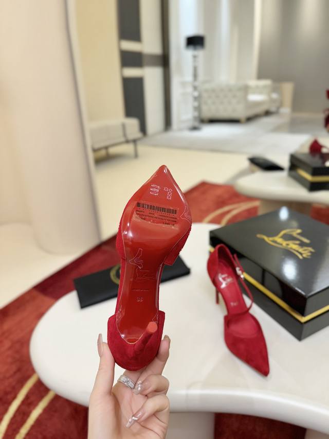 Side-strap Shoes W. DDD Maison Christian Louboutin. This shoe features a 100mm stiletto heel that reveals the iconic Loubi red sole, crafted from Fever Red sheepskin. The shoe has an elegant slingback with an asymmetrical strap trim and a padded insole. It features a new "Eternal" red sole. DDD Size: 34-44 DDD 34, 40, 41, 42. Custom orders are non-refundable and non-exchangeable, 43, 44, 60 DDD Heel height: 10cm DDD Color: Red and Black DDD