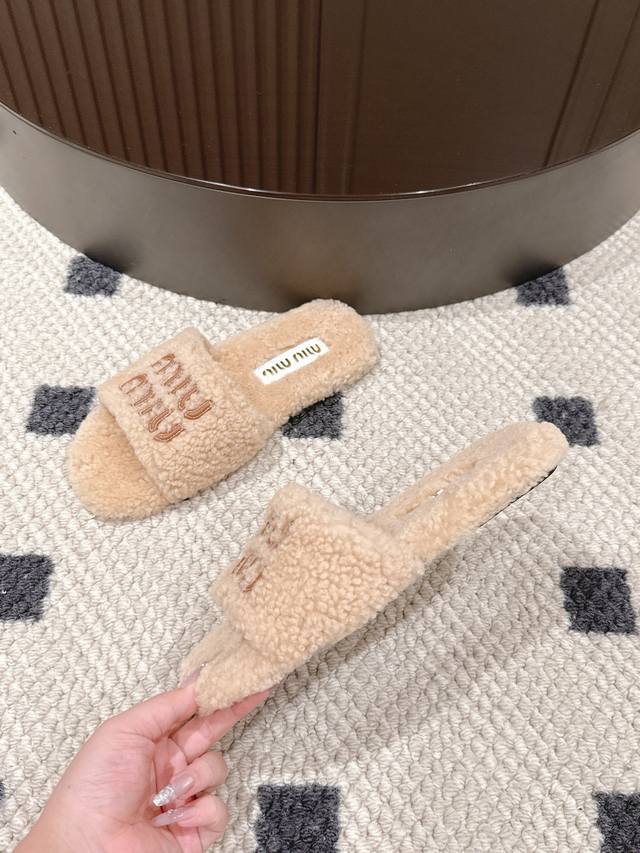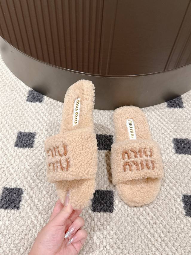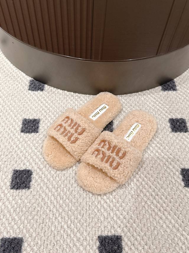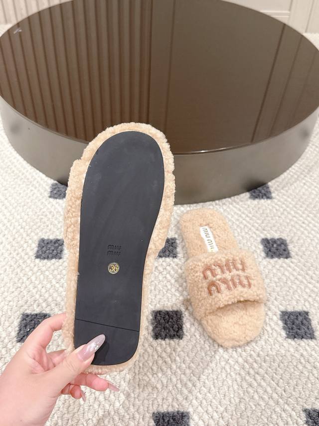 Sizes 35-40, 41 (Custom Made) The adorable Miumiu from the fashion world is here with her 2025 new fur slippers! The fluffy texture feels like wearing clouds on your feet