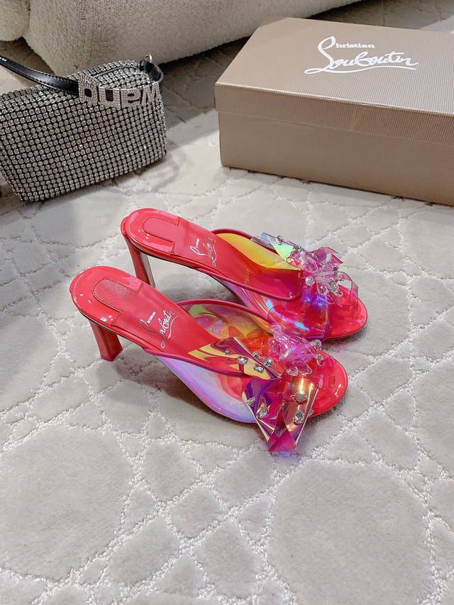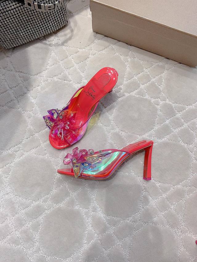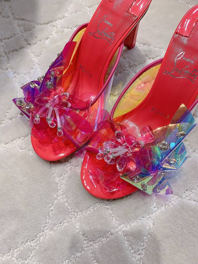 Christian Loubouti* New heavy-duty red-soled high-heeled sandals, embellished with hand-sewn film flowers and rhinestones, exquisitely luxurious and dazzling, rich and charming, weaving together a fairy-tale dream