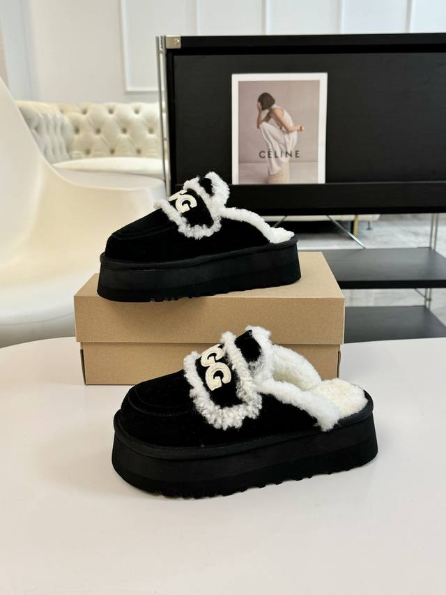 Slippers DDD Ugg~Vs Autumn/Winter Hot Selling Platform Casual Fur Shoes Series DDD Platform Fur Shoes DDD A shoe that won't be seen on others, simple partition design with a speckled outsole, silk and curly fur upper, a must-have for autumn and winter, goes well with any pants or skirts, very comfortable and good-looking DDD Material: Original custom suede DDD Lining: Original custom wool DDD Insole: Original custom wool DDD Outsole: Original molded wear-resistant rubber sole DDD Sizes: 35-39, 40 custom sizes are non-refundable DDD Packaging: Original full packaging DDD Colors: Updated simultaneously with the official website DDD