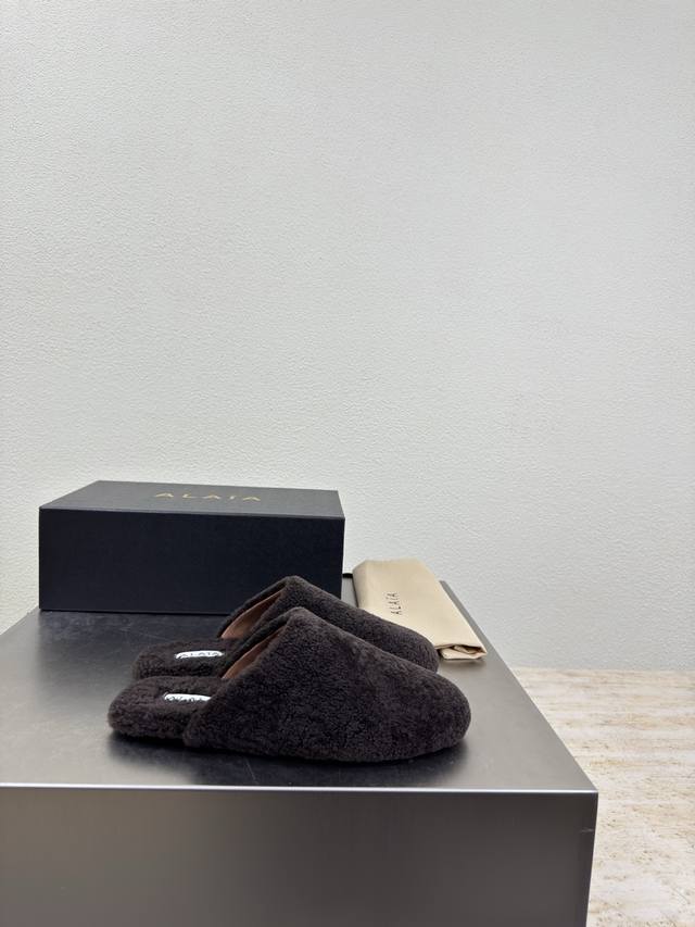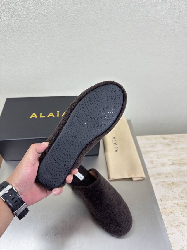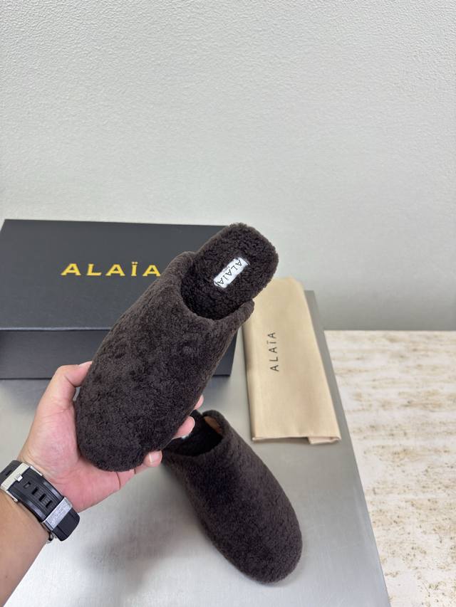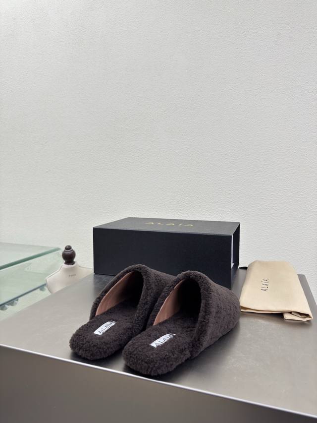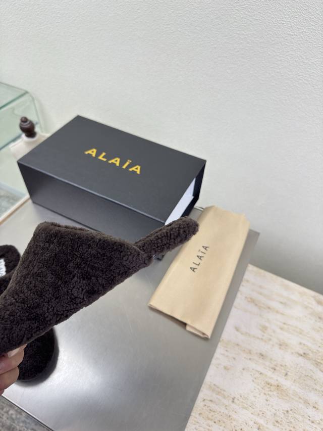 Slippers with lamb's wool upper DDD Comfortable and warm Alaia Ddd From Paris, love at first sight Ddd Coffee color DDD Alaia also has another sexy side DDD Easily paired with different styles and looks, whether it's jeans, suit pants, or a pleated skirt, it can elevate your outfit to fashion, elegance, and excellence Ddd Upper made of lamb's wool Ddd Lambskin lining Ddd Original patterned outsole Ddd Sizes 34 35 36 37 38 39 40 41 42 43 34 40 41 42 43 Customized Ddd Comes with original packaging DDD Ddd