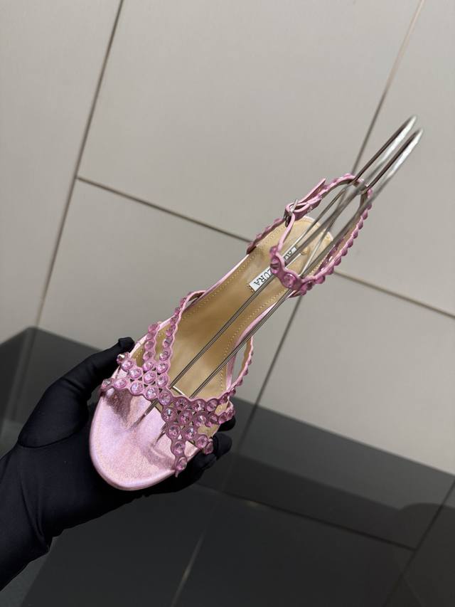 Slippers/Sandals 280 DDD Aquazzura Zp Original Mold New Rhinestone Slippers DDD Made with original custom silk, original mold Swarovski rhinestone decorative buckle, super sparkly DDD The gold iconic pineapple micro-label on the outsole gives the item a rich brand connotation and luxurious appearance. Genuine leather outsole and sheepskin insole DDD Creative design with beautiful and smooth lines, comfortable to wear, a must-have for fashionistas. DDD Upper: Rhinestone DDD Insole: Sheepskin DDD Outsole: Italian genuine leather DDD Heel height: 6.5Cm DDD Shoe size: 36-43 40, 41, 42, 43 Custom made, no returns or exchanges DDD