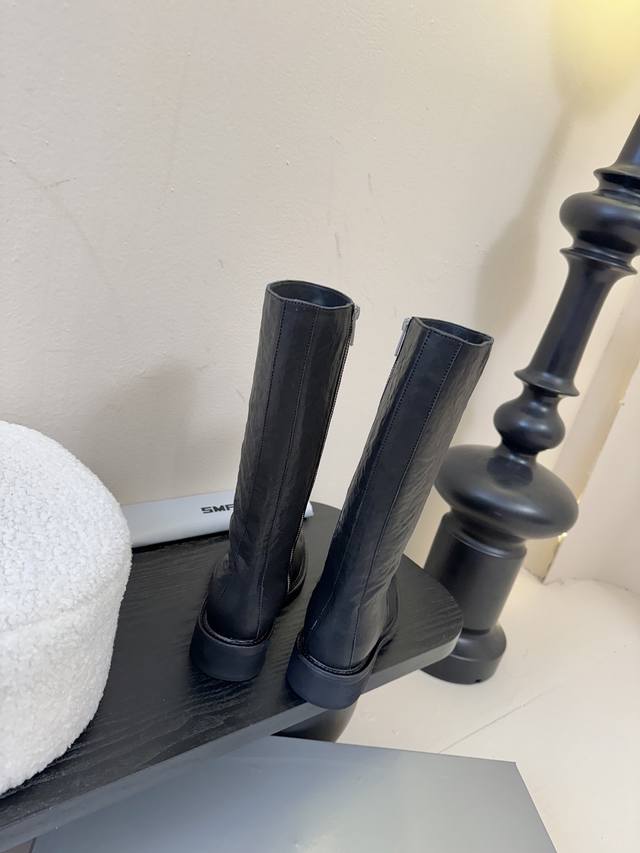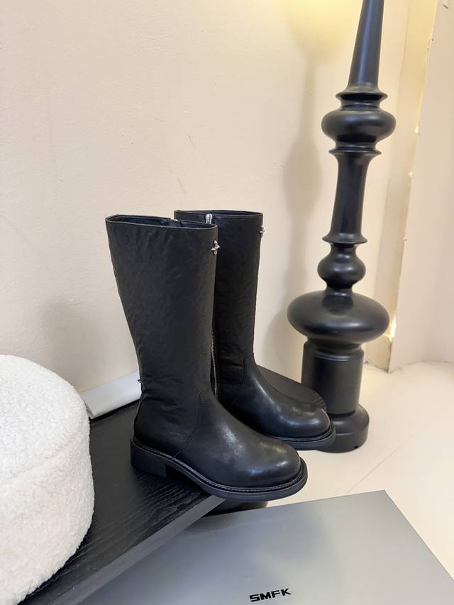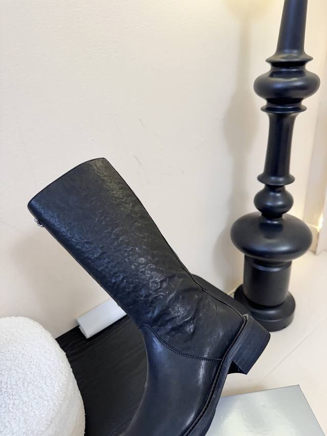 Goodyear welt construction combines the leather upper and sole, making it suitable for long-term wear and a better fit for the wearer. The design is inspired by the riding boots of nomadic herders. A silver cross-shaped metal badge is inlaid at the center of the tongue. The upper is made of horsehide inside and out, and the sole is made of cowhide and rubber. Upper: Cowhide leather; Lining: Cowhide leather; Outsole: Original molded outsole; Size: 35-40