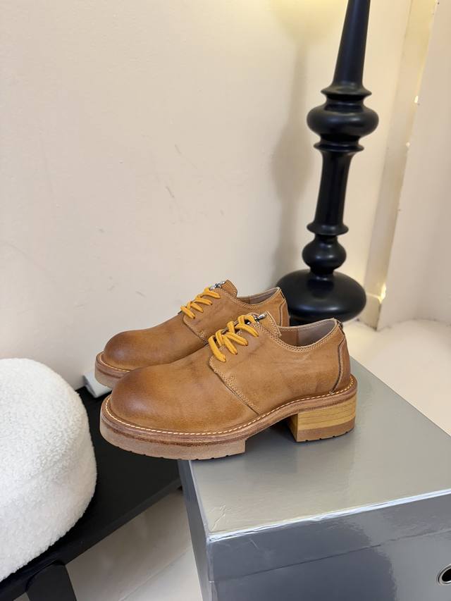 Wild Origins series uses a classic water-dyeing process. After the raw leather shoes are finished, the dye is applied to batches of shoes in a tumbler. During the tumbling process, the leather upper and sole are mutually polished and colored, giving the leather a mottled color while showcasing its natural texture and oily sheen. The
