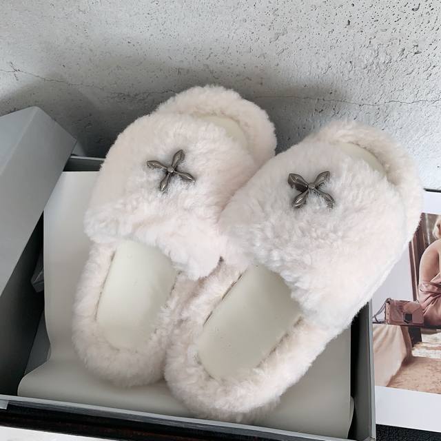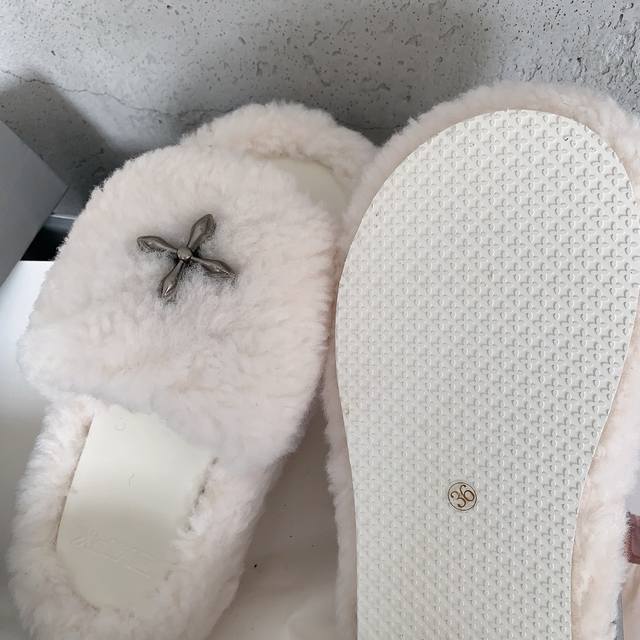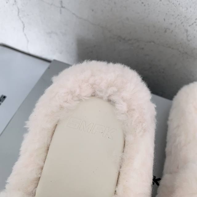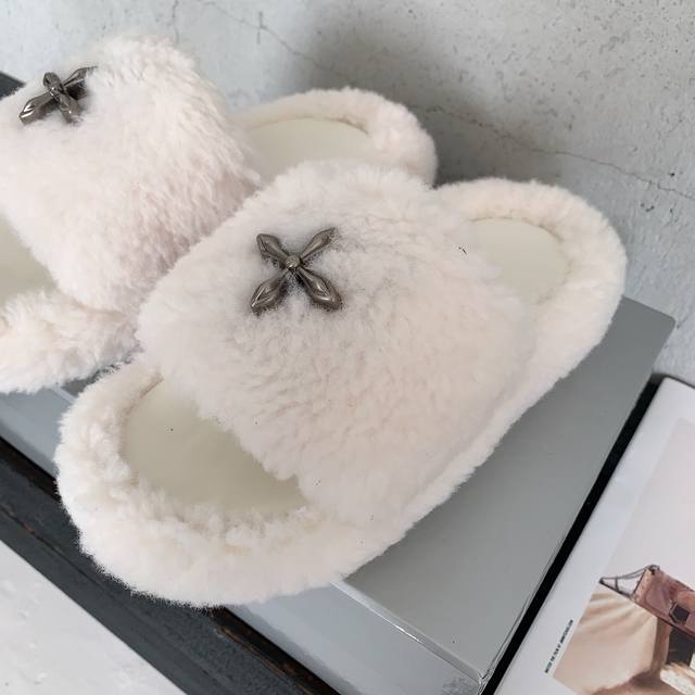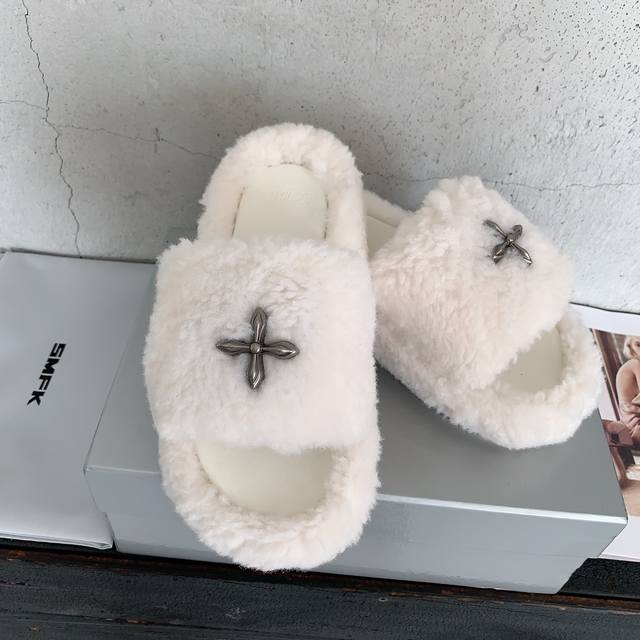 Smfk 2025 Autumn/Winter New Thick-Soled Furry Slippers, Brand New Sm Cross Flower Series, 5cm Height Increase, For Longer Legs, Perfect Fit, Lambswool Fabric, Sheepskin Lining, Custom Molded Rubber Non-Slip Outsole, Sizes: 35-39#, 40# Custom Made, No Returns or Exchanges