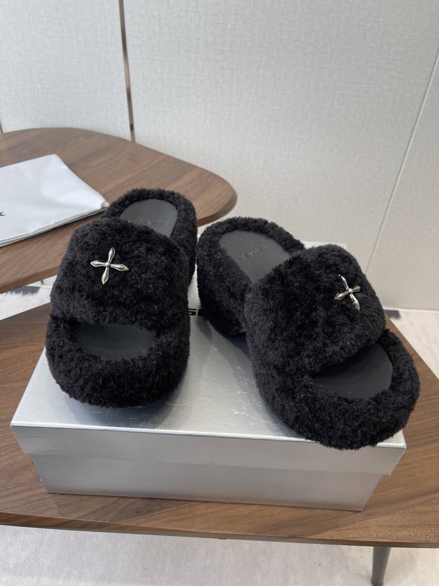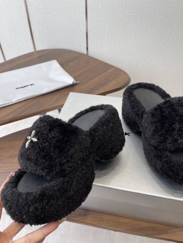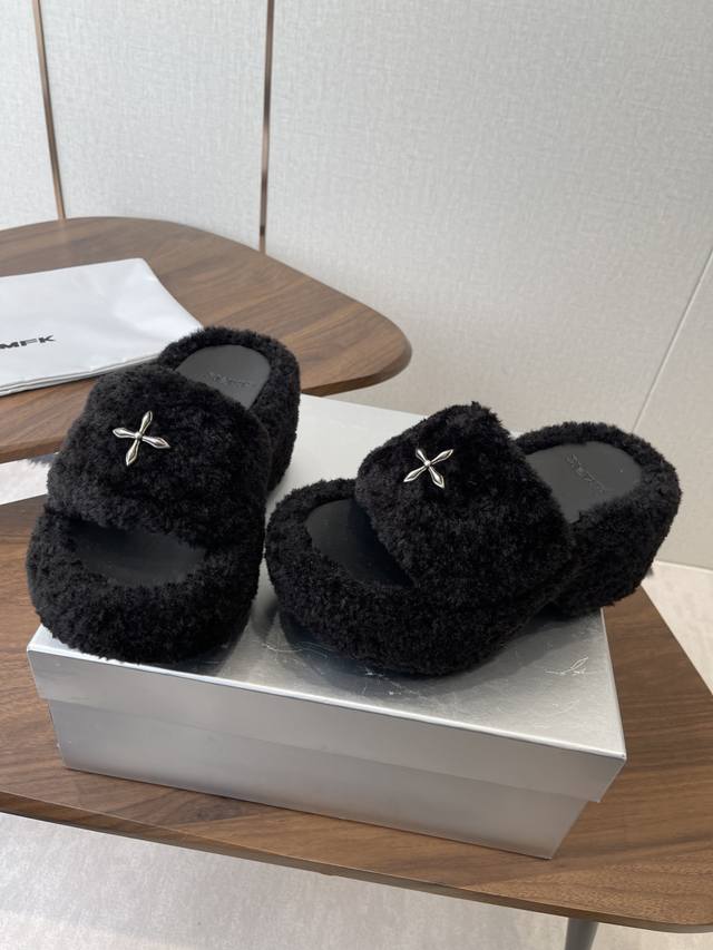 Smfk 25Ss Autumn/Winter New Arrival Thick-Soled Furry Slippers DDD A touch of wildness, a touch of personality, this season's Smfk collection is truly irresistible! These furry slippers are simply irresistible! Super cool, desert warriors, get yours now! DDD The upper is made of Icelandic fur, with a mesh lining for a soft and comfortable feel without chafing. Custom-made original hardware buckles and a molded anti-slip cross sole. DDD Size: 35-40. Size 40 is custom-made and non-refundable. DDD