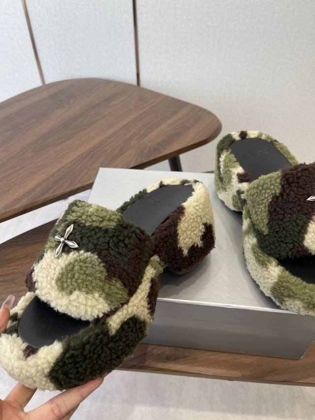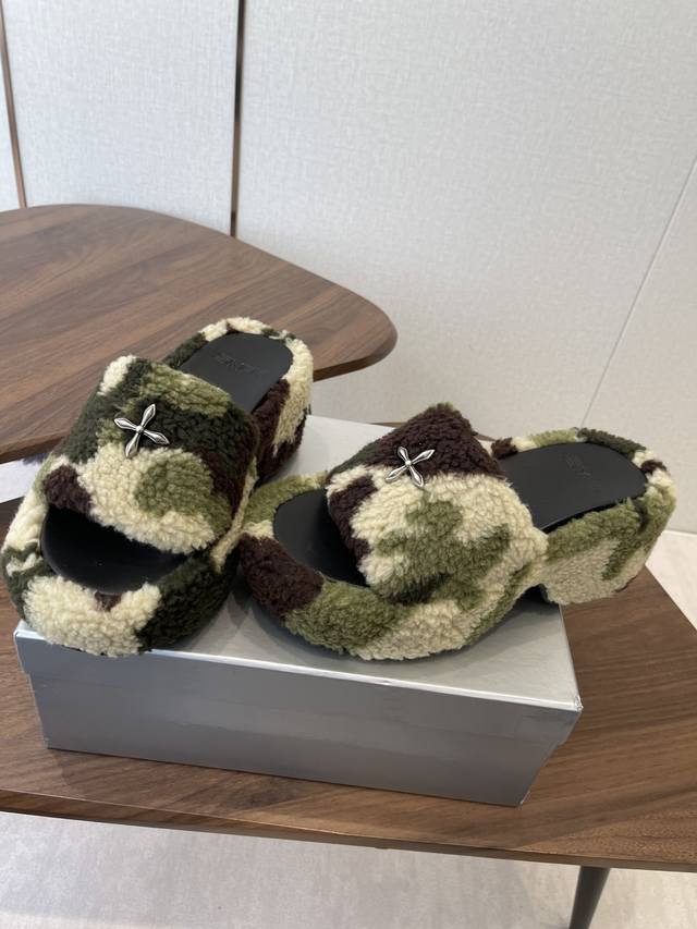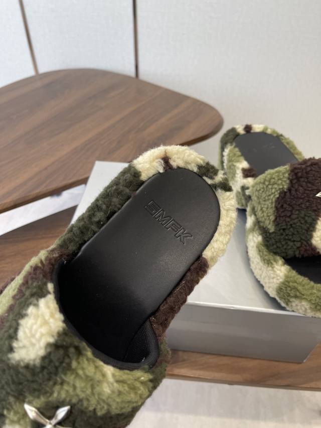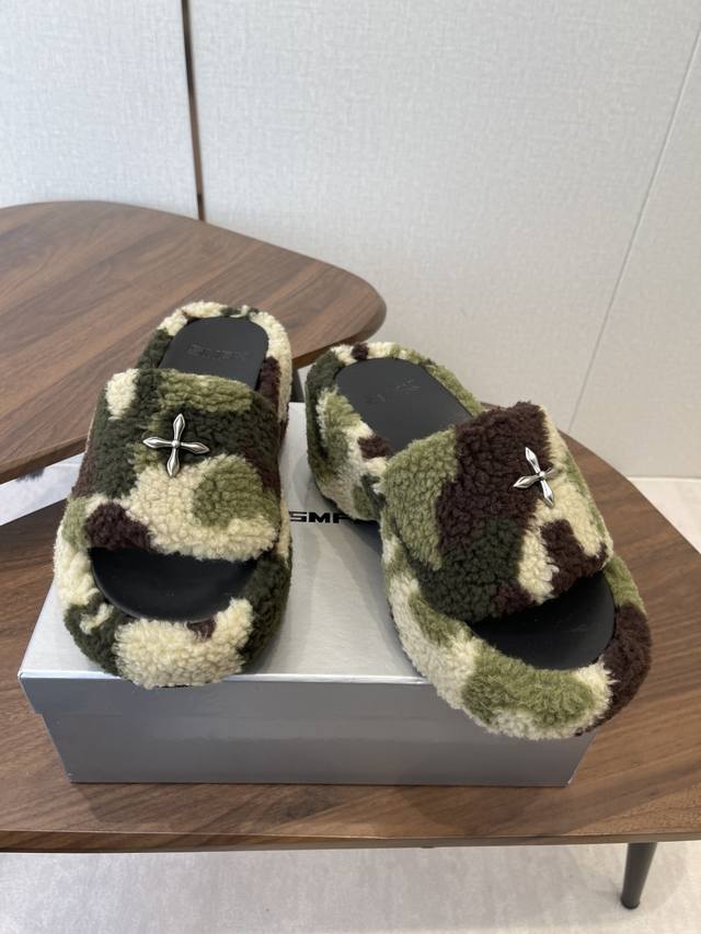 Smfk 25Ss Autumn/Winter New Arrival Thick-Soled Furry Slippers DDD A touch of wildness, a touch of personality, this season's Smfk collection is truly irresistible! These furry slippers are simply irresistible! Super cool, desert warriors, get yours now! DDD The upper is made of Icelandic fur, with a mesh lining for a soft and comfortable feel without chafing. Custom-made original hardware buckles and a molded anti-slip cross sole. DDD Size: 35-40. Size 40 is custom-made and non-refundable. DDD