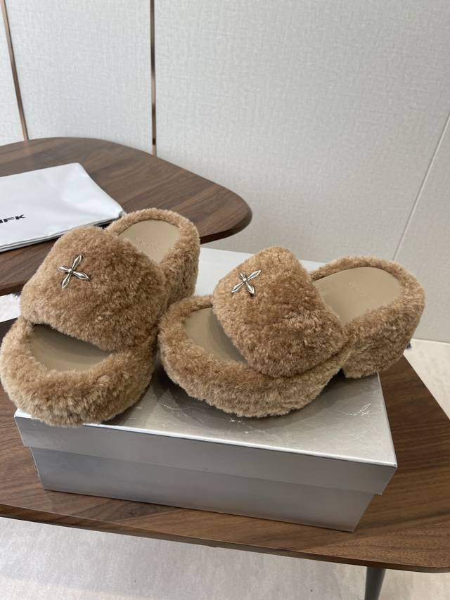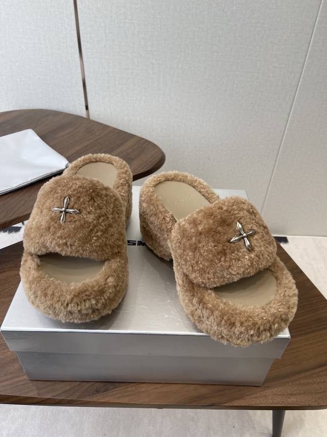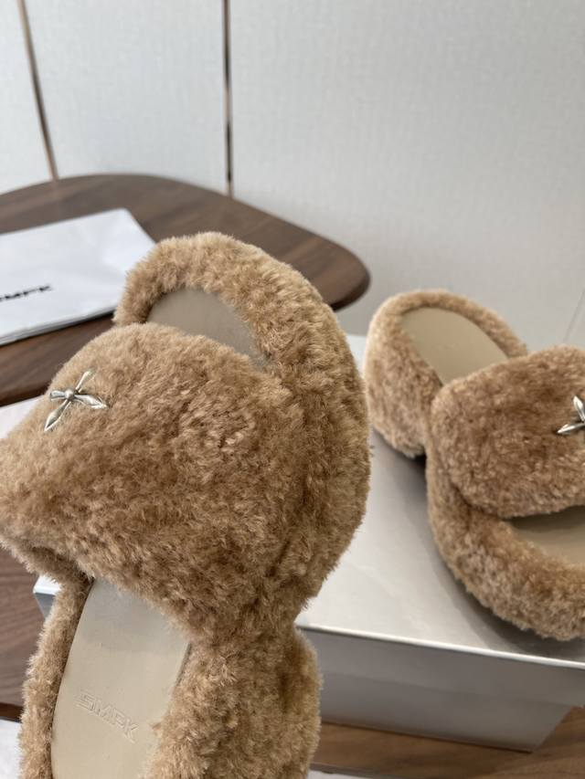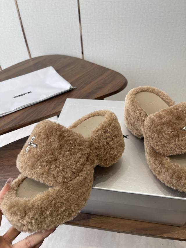 Smfk 25Ss Autumn/Winter New Arrival Thick-Soled Furry Slippers DDD A touch of wildness, a touch of personality, this season's Smfk collection is truly irresistible! These furry slippers are simply irresistible! Super cool, desert warriors, get yours now! DDD The upper is made of Icelandic fur, with a mesh lining for a soft and comfortable feel without chafing. Custom-made original hardware buckles and a molded anti-slip cross sole. DDD Size: 35-40. Size 40 is custom-made and non-refundable. DDD