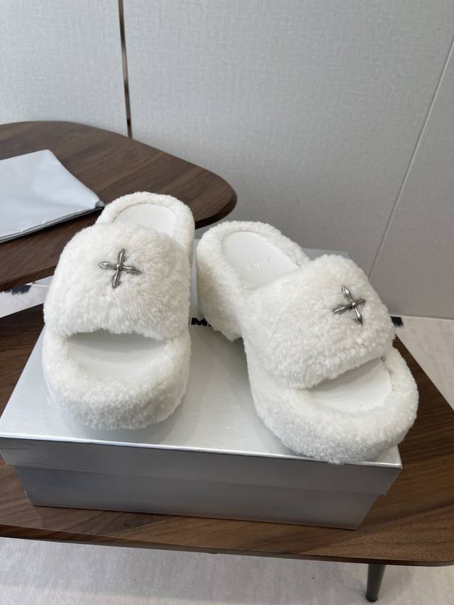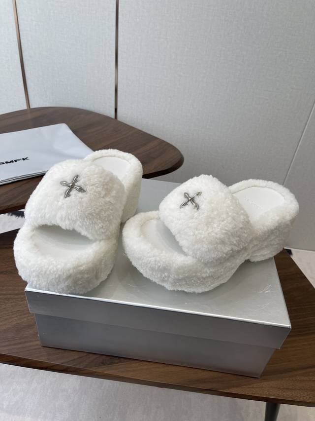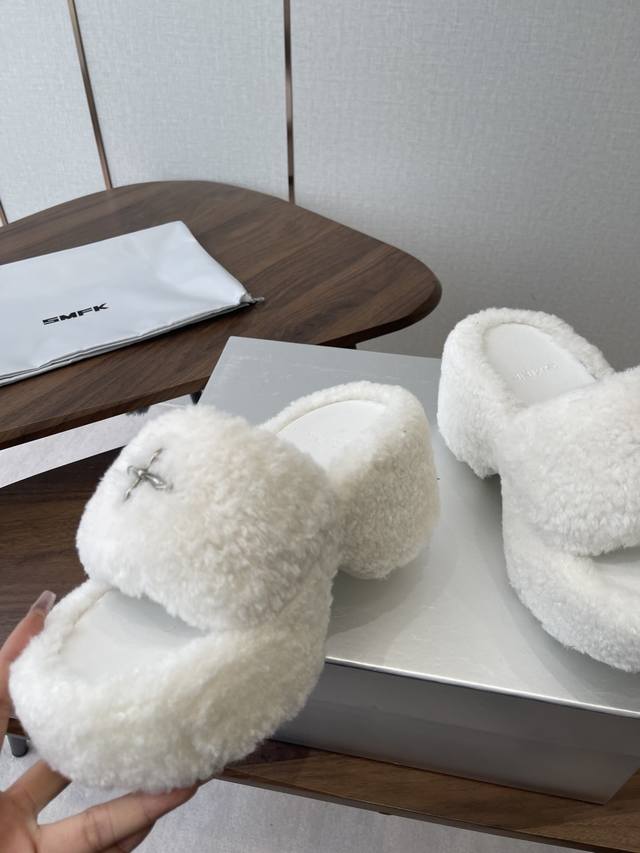 Smfk 25Ss Autumn/Winter New Thick-Soled Furry Slippers DDD A touch of wildness, a touch of personality, this season's Smfk is truly irresistible! These furry slippers are simply irresistible! Super cool, desert warriors, get yours now! DDD The upper is made of Icelandic fur, with a mesh lining for a soft and comfortable feel without chafing. Custom-made original hardware buckles and a molded anti-slip cross sole. DDD Size: 35-40. Size 40 is custom-made and non-refundable. DDD