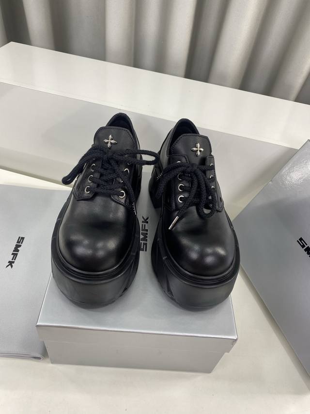Smfk Latest Hot Selling Cross-Pattern Thick-Soled Casual Sneakers Dark Series! This versatile minimalist Chinese-style sneaker inherits many winning trendy elements from various brands. The super cool dark and versatile design is made of high-density breathable cowhide and features a comfortable, moderately thick sole. Details ensure a stable fit and prevent slippage. Material: Original imported custom cowhide material. Lining: Imported calfskin. Sole: Original molded cross-pattern rubber outsole. Sole thickness: 8cm without toe cap, 6cm with toe cap. Size: Women's 35-40. Size 40 is custom-made and non-refundable.
