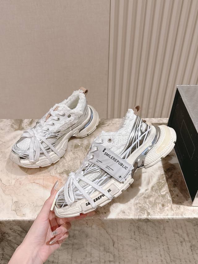 #Hidden low-top interchangeable open smile thick-soled casual canvas dad shoes. The upper is made of exquisite original washed canvas, and the inner lining is cowhide. The mold is customized and the combination of the outsole is deconstructed. The large embroidered smiley face pin accessories and the toe are full of photosensitive letter details. They look amazing on the feet and increase height and make the legs look thinner.