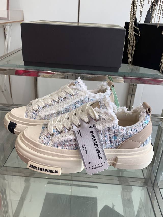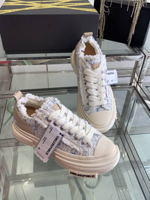 Smilerepublic Sr Galaxy 70S Low-top Canvas Shoes, No Lights, Couple Style, Zhang Jianing, Wang Lixin, Luo Yizhou, Fan Shiqi, Celebrity Same Style, Super Trendy, Celebrities, and Internet Celebrities Wear These Cool Shoes, Both in Looks and Comfort. I really can't resist these shoes! I'd call them the pinnacle of platform shoes. They're so versatile! The shoes are really big, like wearing a boat on your feet. They make your legs look incredibly long and thin, giving a delicate and elegant appearance. They add about 4cm in height, a blessing for short people. Sizes: 35-44.