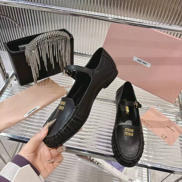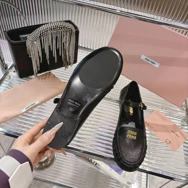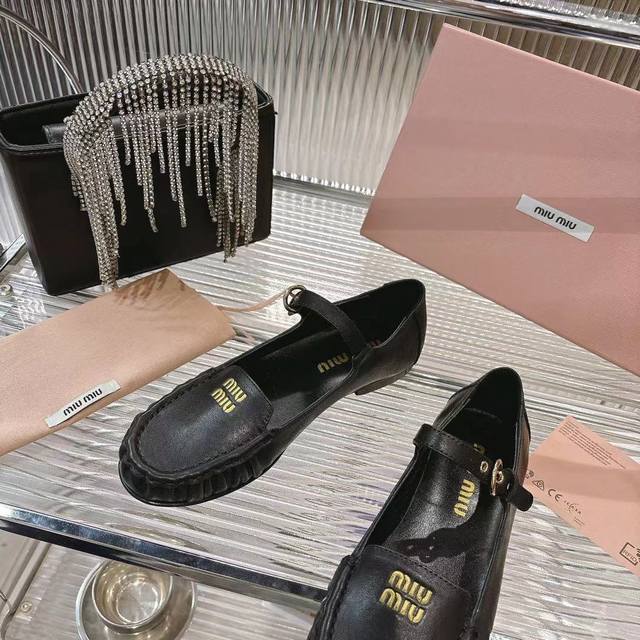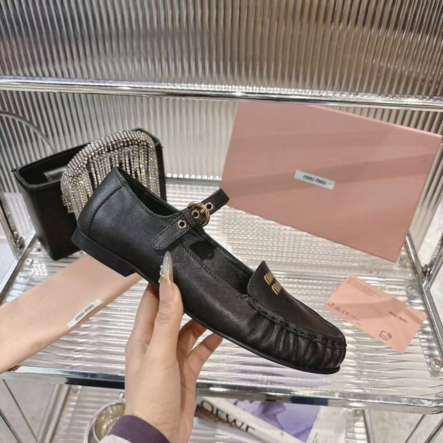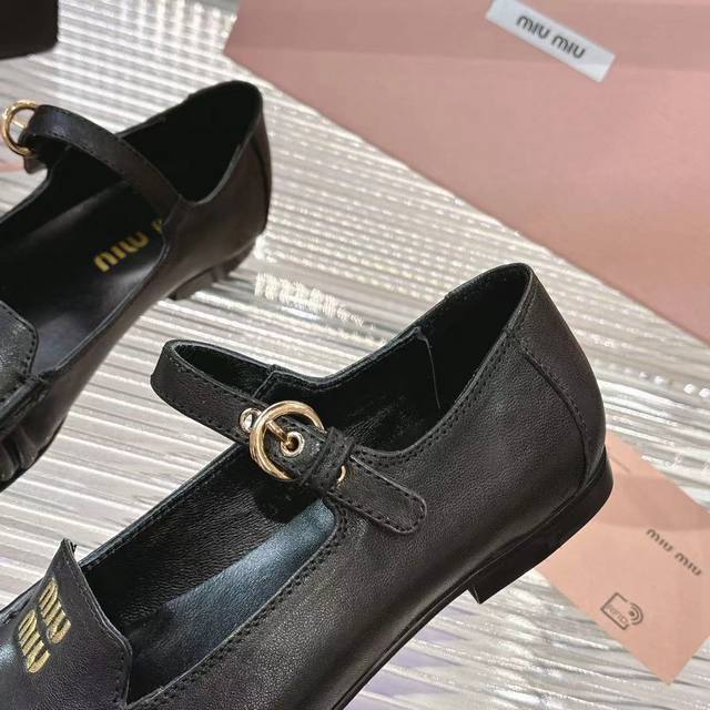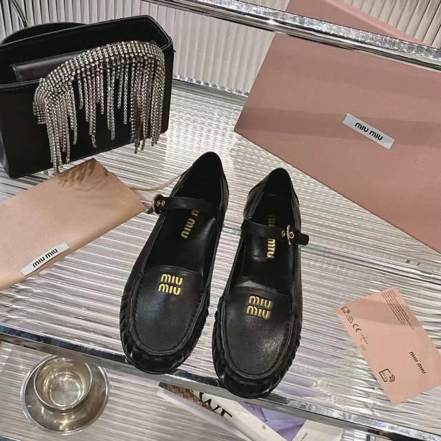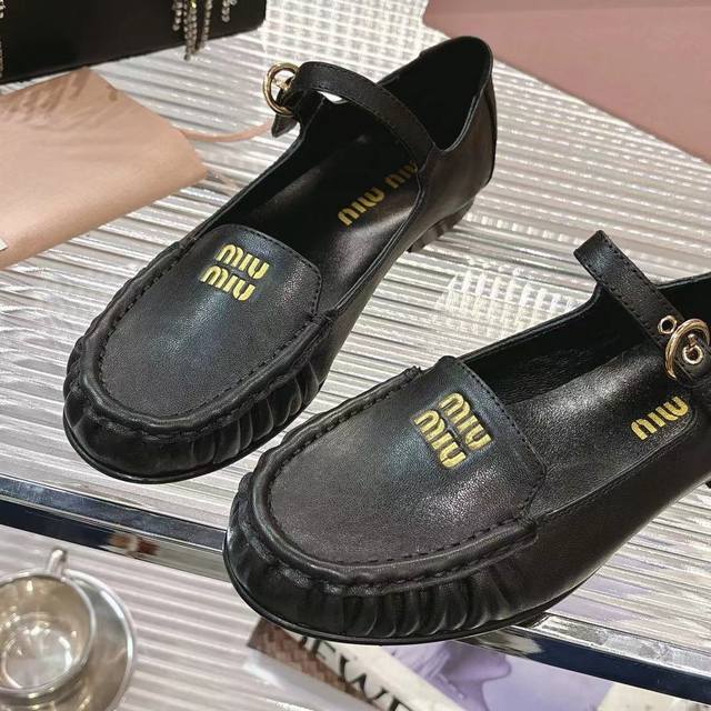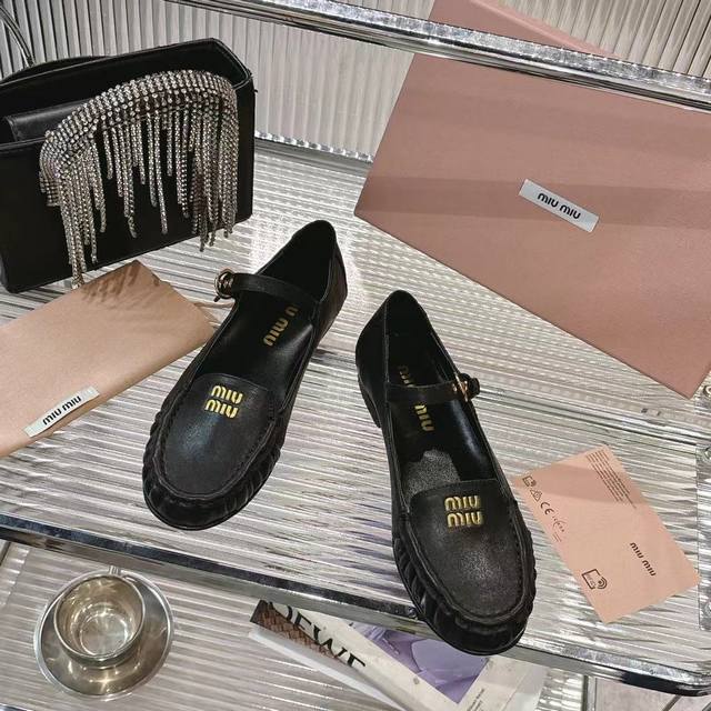 Spring/Summer 26Ssmiumiu Retro Mary Jane Shoes! When girlish charm collides with retro texture, these shoes are the perfect mood switch for your autumn/winter wardrobe, a versatile everyday choice for sweet and cool girls. The gold-stamped "Miu Miu" logo on the toe and the single-strap buckle, the classic silhouette of a retro Mary Jane, hides the brand's unique delicate girlishness; the hand-stitched pleats along the edges add a relaxed feel with every step. Upper: Imported sheepskin Lining: Sheepskin Outsole: Genuine leather Sizes: 35-40, 41, 42 (custom orders are non-refundable) Factory Price (pp: [Price not specified])