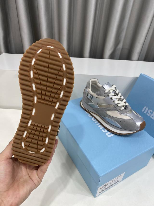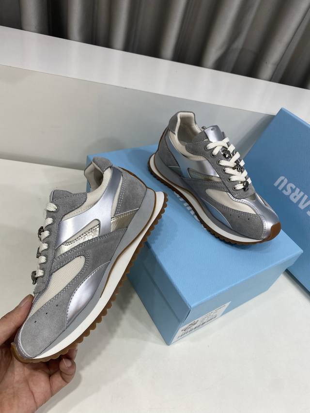 Sugarsu Spring/Summer 2025 Casual New Series Color Block Casual Sneakers. The simple square toe design exudes a retro yet refined feel. The shoelace design adds a touch of dynamism, and its versatility is truly amazing. Whether it's a sweet dress or casual wide-leg pants, it can perfectly complement any style, easily creating different looks. Material: Original cowhide custom fabric with multi-layer process. Lining: Original custom sheepskin. Insole: Original custom sheepskin. Outsole: Original molded multi-layer combination sole. Packaging: Original full packaging. Sizes: 35-39, Size 40 is custom-made and non-refundable. Colors: Updated simultaneously on the official website.