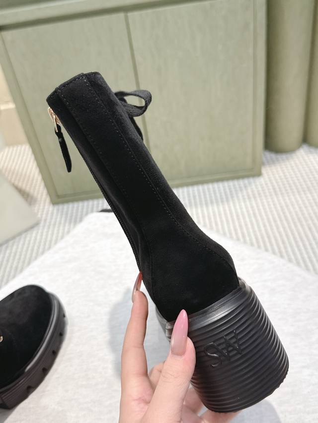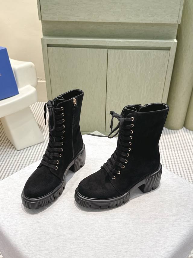 DDD Sw Autumn/Winter Boots - High-Quality Item! Stuart Weitzman Chunky Heel Pearl Lace-up Ankle Boots DDD Sw 5050 Soho Bootie. Unbeatable quality from original channels! Featuring our popular Lift tire sole, these boots boast a bold and rugged design, exuding style and charm while remaining lightweight and comfortable against the leg. DDD The platform heel is approximately 3cm high, offering a lightweight and comfortable fit. The eye-catching chunky silhouette, combined with a range of materials, ensures every step is stylish, functional, and impactful. DDD Upper: Original calfskin DDD Lining: Original sheepskin DDD Heel Height: 6.5cm DDD Outsole: Original mold DDD Size: 35-40 Size 40: Custom orders are non-refundable DDD