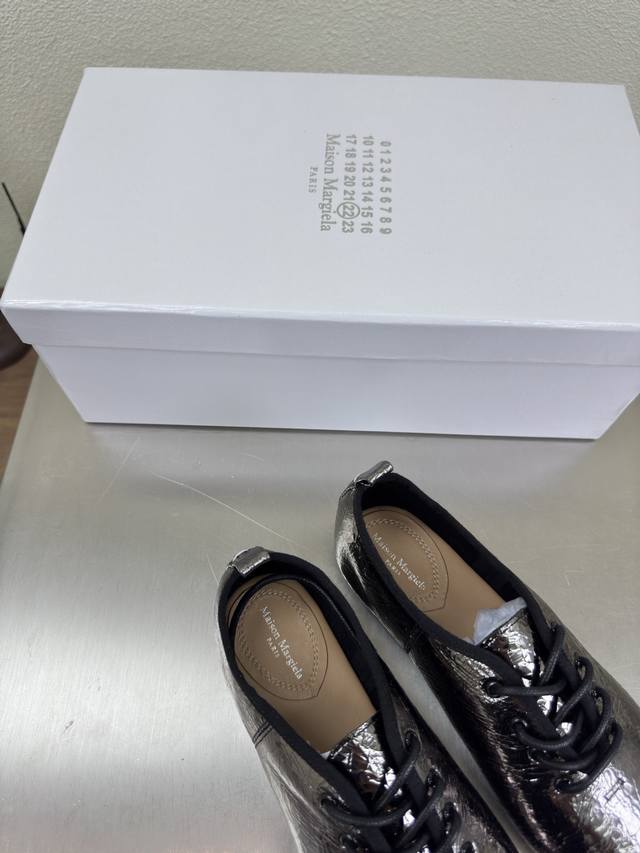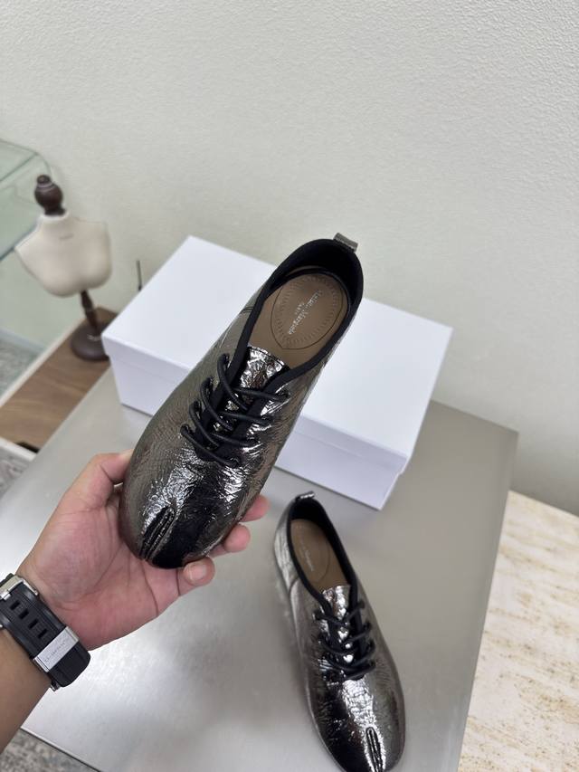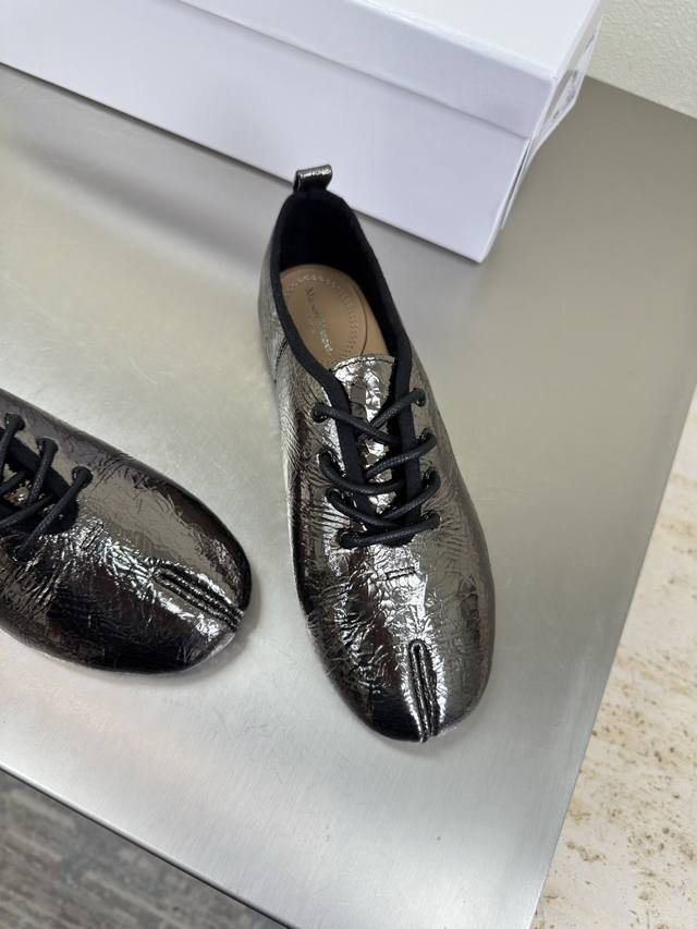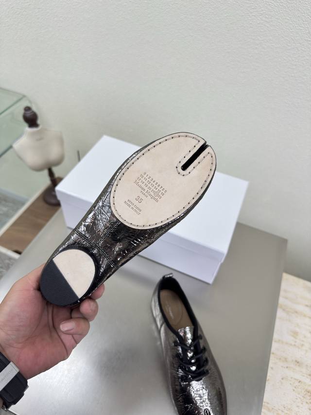 Tabi Split-Toe Open-Back Shoes Mm6 Maison Margiela DDD Black and Silver Metallic Leather DDD Hot Fashion Style DDD Black and Silver DDD Mm6 Maison Margiela's experimental approach starts from functionalist deconstruction aesthetics, with unexpected playfulness and avant-garde interpretations. The versatile minimalist style cuts present incredibly creative fashion experiment looks. DDD Genuine leather outsole design, high-gloss cow suede, comfortable and delicate DDD Water-dyed cowhide lining, high-end matching DDD Rebellious yet understated Mm6 Maison Margiela releases a new style, fashionable footwear with practicality as its design core. DDD's avant-garde design shares a similar aesthetic with the main Tabi split-toe design. Featuring a top-grain cowhide upper and a water-dyed cowhide lining, the clean lines of the upper make it both modern and stylish, and a very practical everyday wardrobe staple. It boasts an Italian genuine leather outsole, identical to the original, with a numbered heel. Women's sizes 35, 36, 37, 38, 39, 40, and 40 are available for customization.