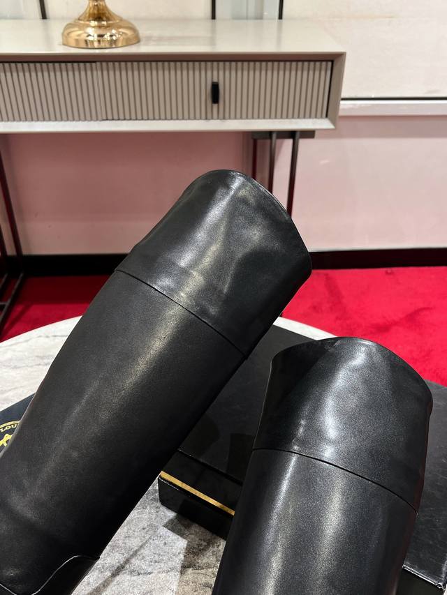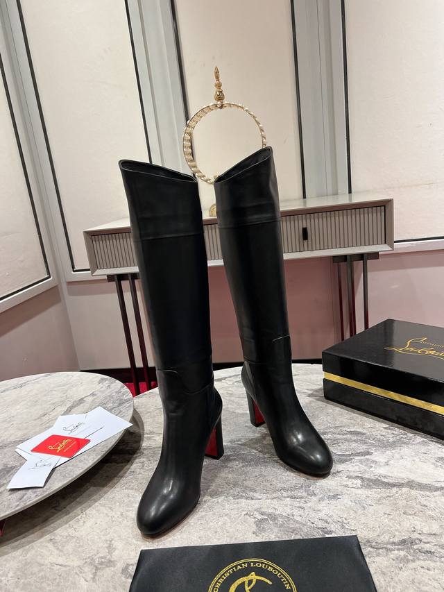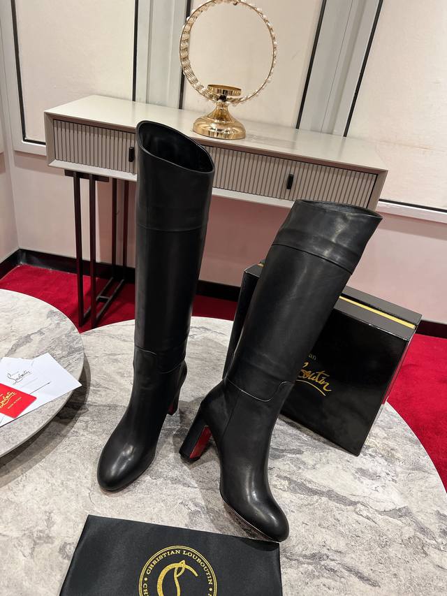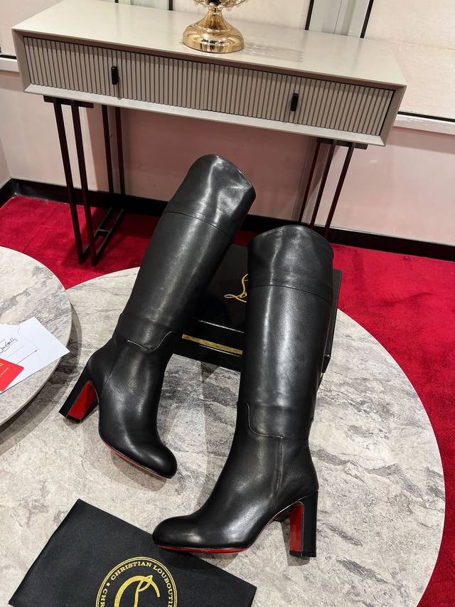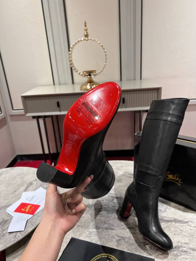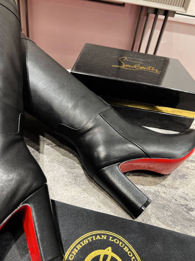 Jane Booty features a square, 85mm sloping heel and is crafted from black calfskin. This urban shoe is characterized by its stylish lines and padded insole. This is thanks to an innovative coating technology that ensures the durability and lasting vibrancy of our signature Louboutin red. Material: Imported calfskin; Full sheepskin lining and insole; Italian genuine leather outsole . Sizes: 35-42. All sizes are made to order and cannot be returned or exchanged. Color: Black. Heel height: 8.5cm.