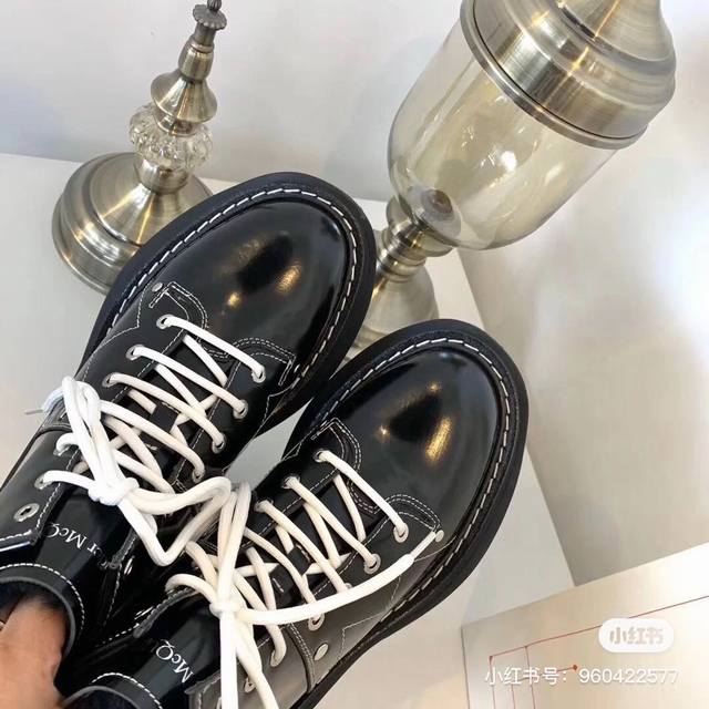The latest hot-selling item, factory direct, high-quality version available for photoshoots, Alexander McQueen couple's pair. Purchase the original 1:1 scale mold of the outsole, featuring simulated leather welts. Sold out at the counter. Endorsed by celebrities like Guli Nazha and Wu Lei, and influencers. This is the latest Milan Fashion Week runway style. Available on Taobao without label.