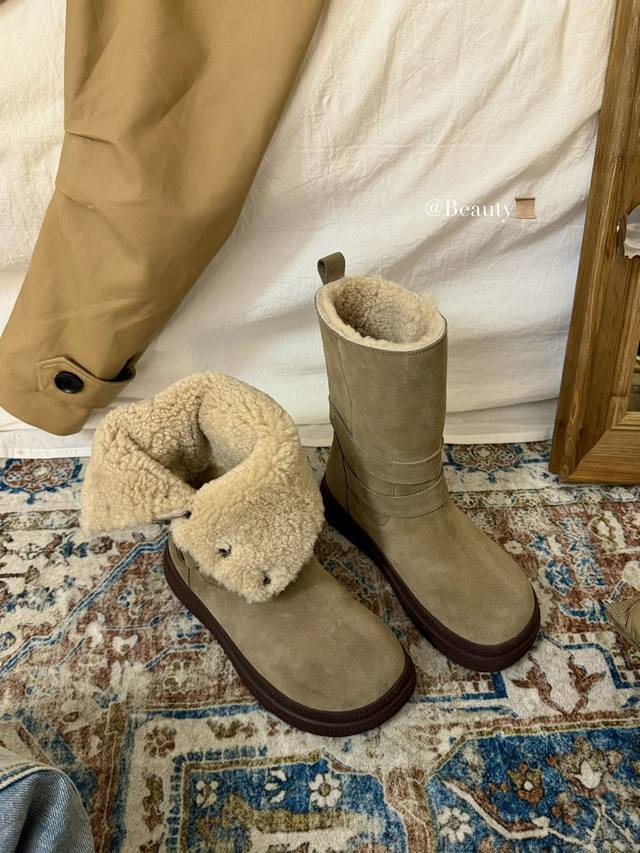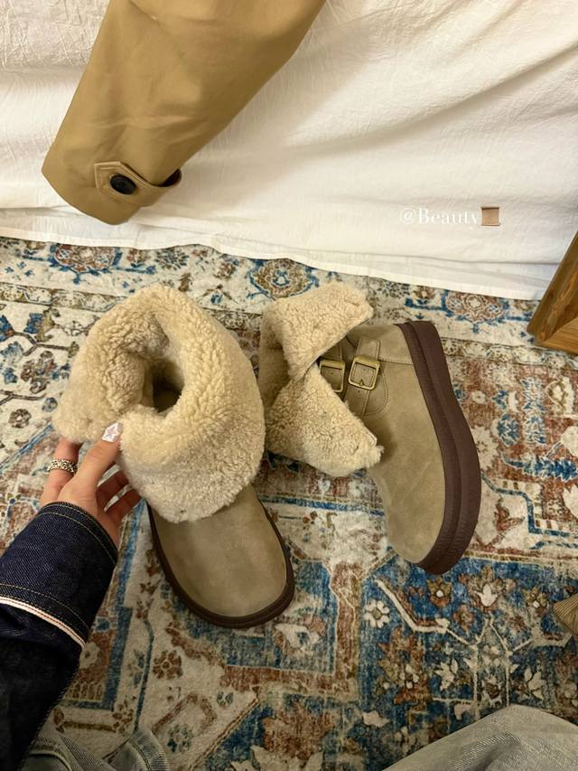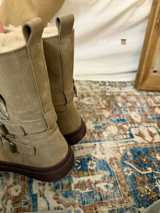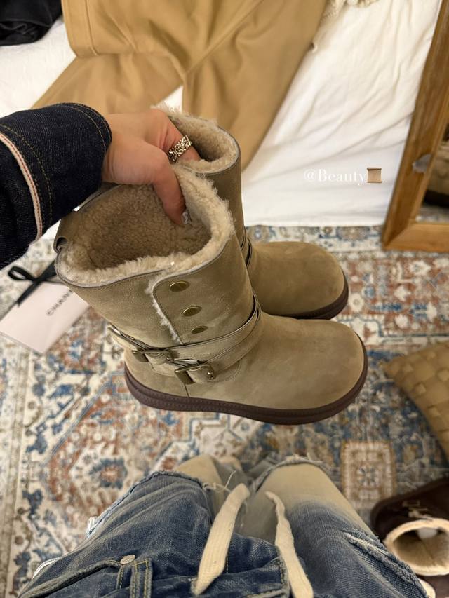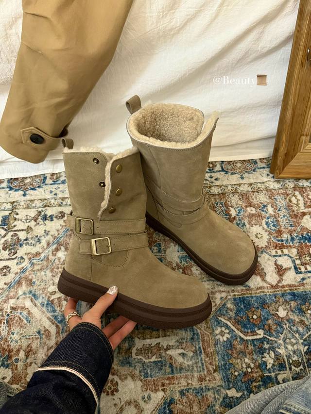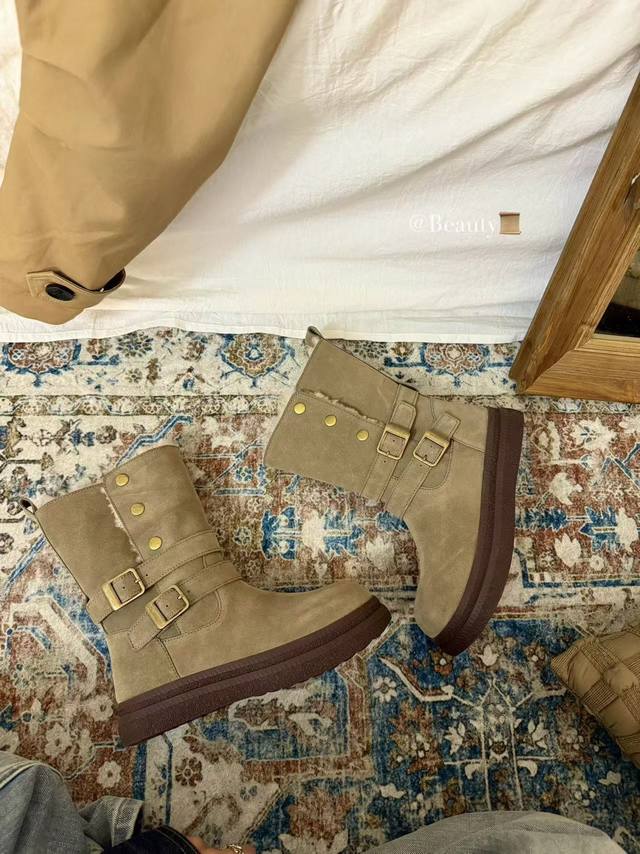 The perfect autumn/winter ritual comes from these motorcycle-style snow boots! The combination of cowhide and metal buckles is amazing