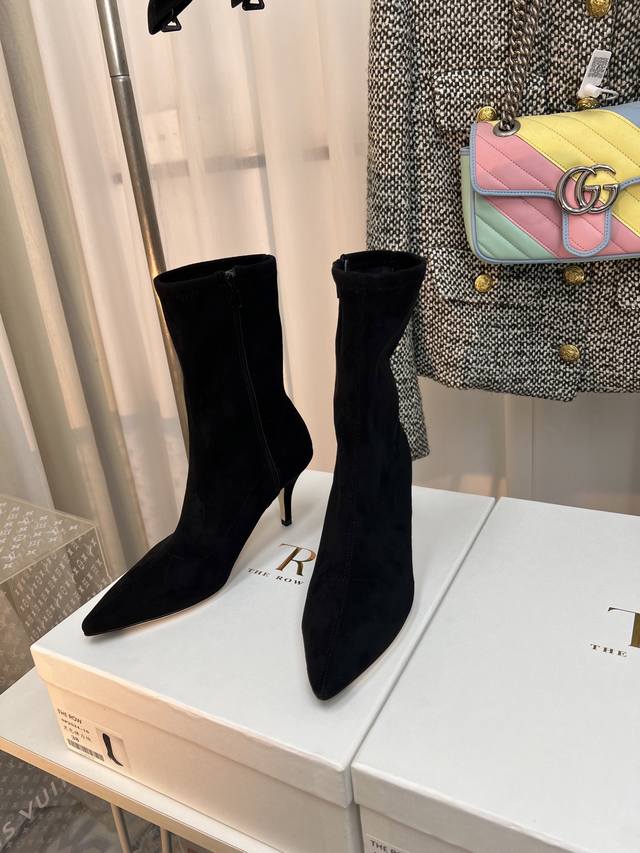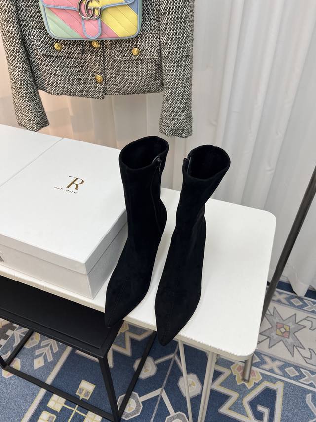 The Row 2025 Early Autumn New Style Tr Elastic Ankle Boots Kitten Heel