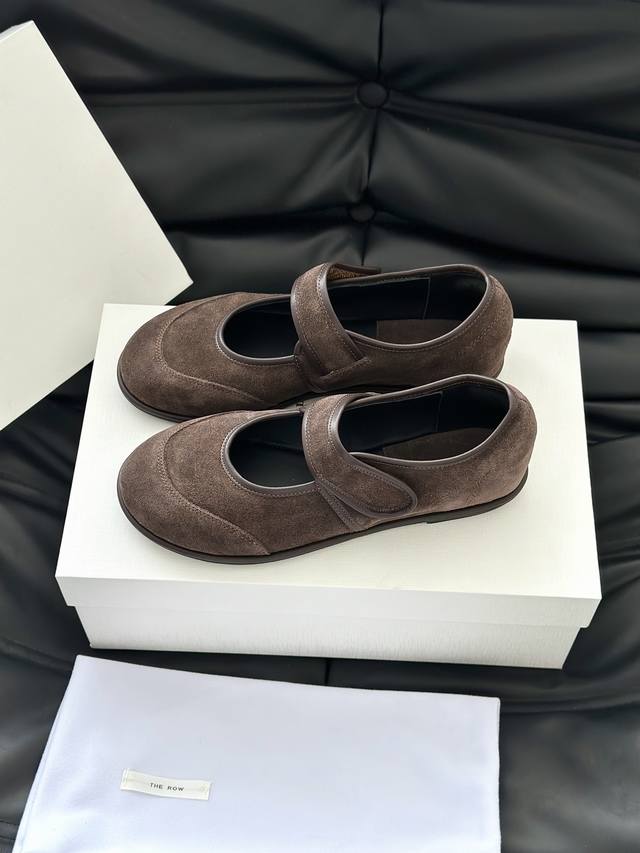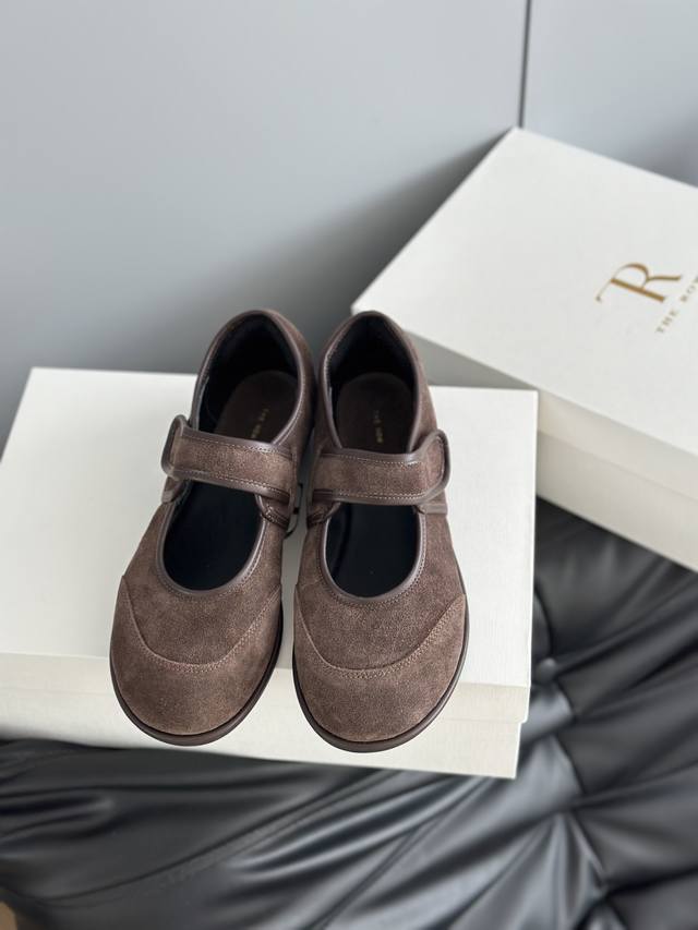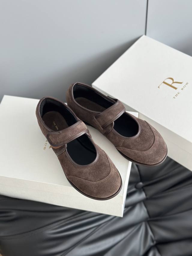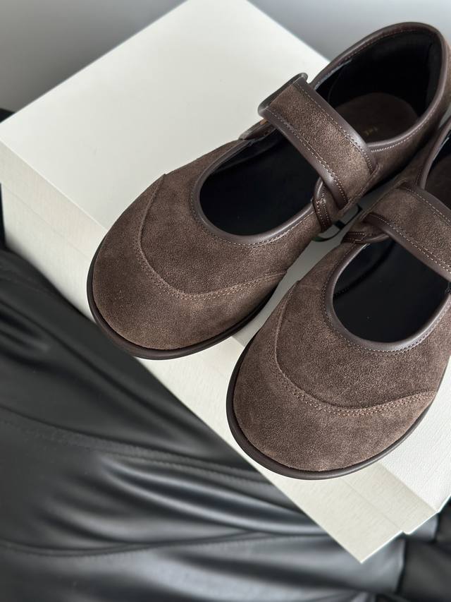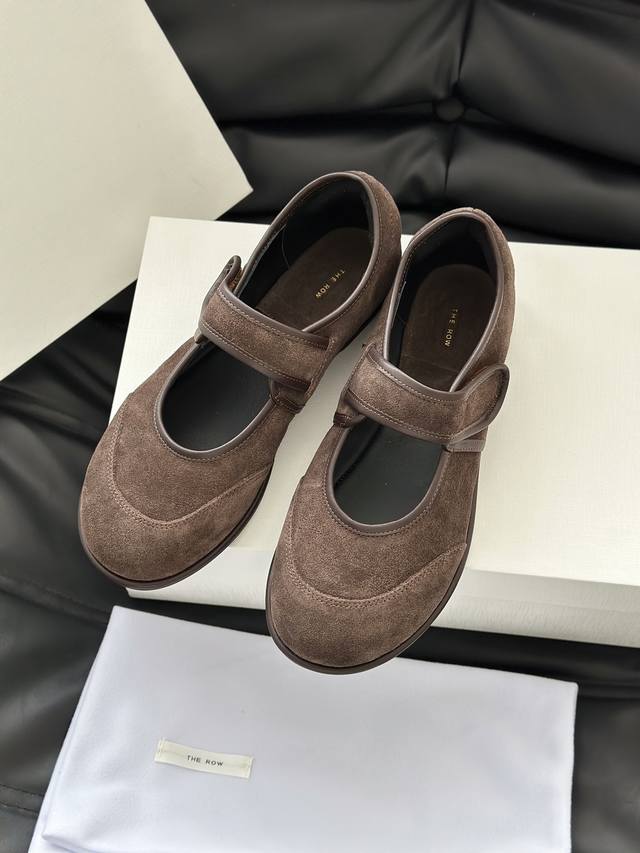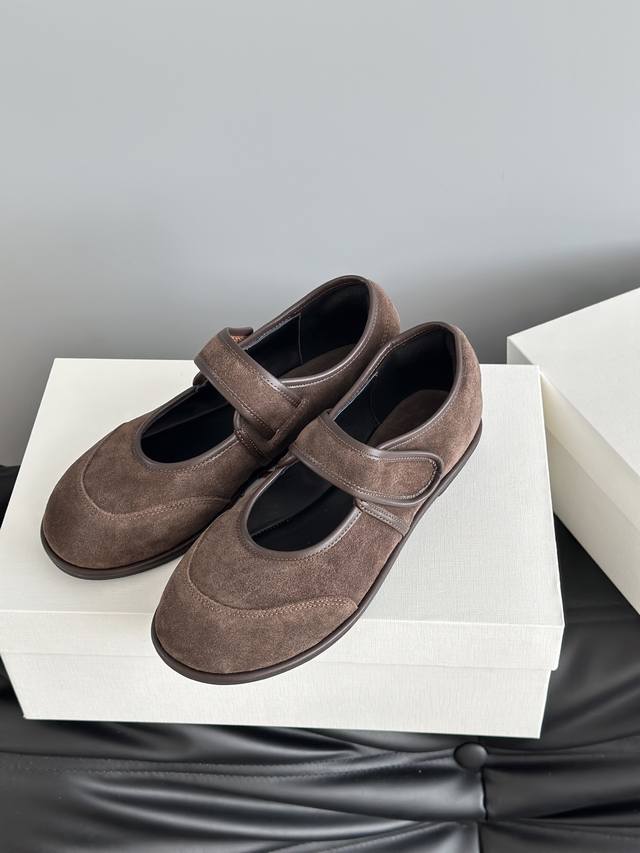 The Row 2025 Fall/Winter New Velcro Mary Jane Shoes, Grandma Shoes DDD Simple retro unisex style! Very comfortable flat shoes, minimalist design concept, slimming fit, easy to wear, combining good looks and practicality DDD The upper is made of original cow suede, the inner lining is sheepskin, and the original molded rubber outsole DDD Sizes: 35, 40. Sizes 40 are custom-made, no returns or exchanges DDD