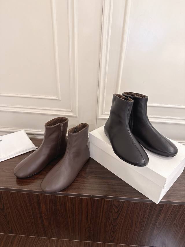 The Row 2026 New Flat Chelsea Boots DDD It's rare to see a pair so meticulously crafted, with such a strong sense of comfort and support for the feet. They perfectly flatter the foot shape while maintaining a unique charm. Easy to put on and very comfortable, perfect for everyday wear, and incredibly versatile! Ddd Upper: Suede lambskin Ddd Lining: Genuine fur Ddd Outsole: Original sole Ddd Sizes: 35-41 40 '41 Made to order, no returns or exchanges DDD