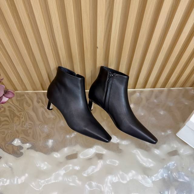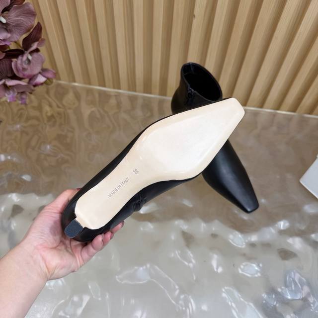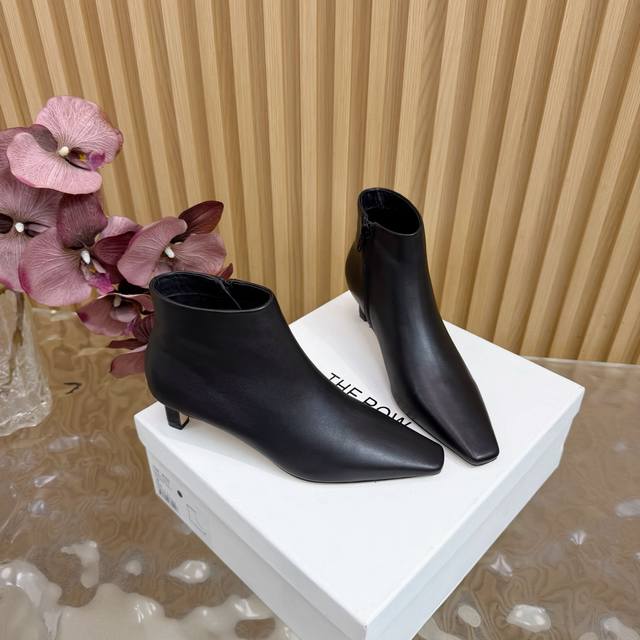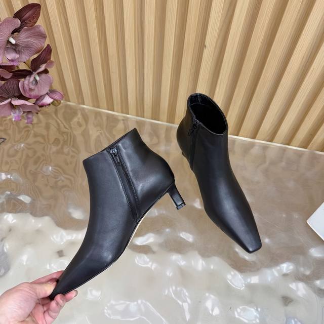The Row 25S Autumn/Winter New Kitten Heel Ankle Boots with Retro Pointed Toe Elements DDD Ankle Boots DDD The boot body features clean and smooth lines, flowing seamlessly from the toe to the shaft DDD The pointed toe design is a "leg-lengthening magic weapon" DDD Instantly elongates the leg line, making legs look straight and slender DDD Whether you pair it with tailored suit pants DDD or a flowy dress, it fits perfectly DDD Effortlessly creating a stylish look. DDD The use of elastic fabric is the brilliance of these boots DDD It conforms to the curves of the leg, not too loose, not too tight, just right, both modifying the leg shape DDD Without feeling restrictive, even after wearing it for a long time, it is free and comfortable DDD The height of the small high heel provides just the right amount of support DDD When walking, your posture is light, your steps are confident and steady, and you have a commanding presence! DDD uses original sheepskin suede and mixed sheepskin upper. The inner lining and insoles are made of fleece. It features an Italian imported genuine leather outsole. Heel height: 4cm. Sizes: 35-39, 40, 41 (custom sizes available).