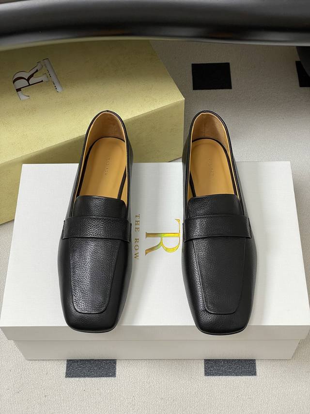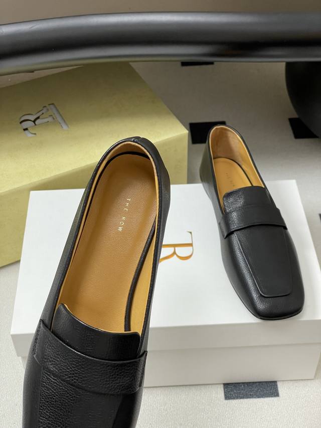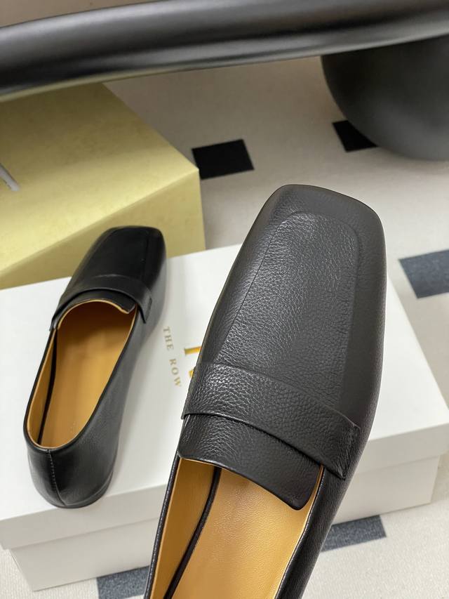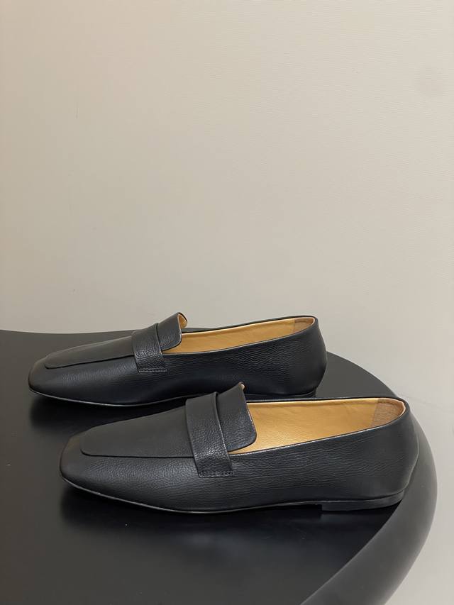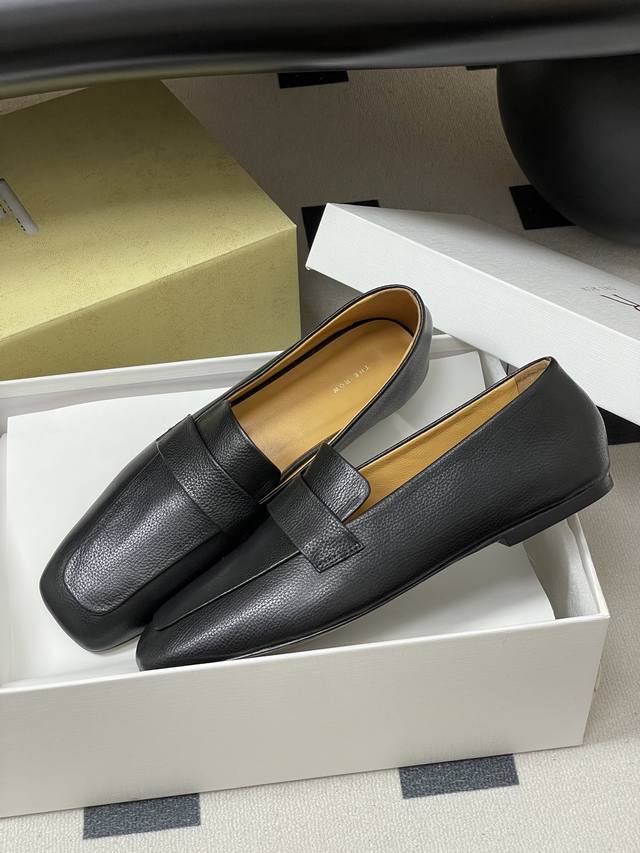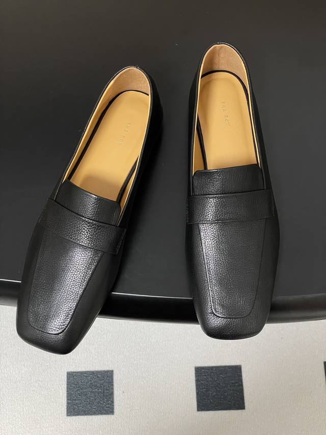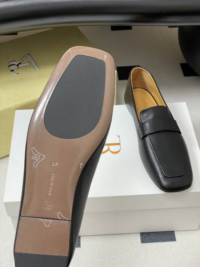 The Row 25Ss Early Autumn New Tr Square Toe Low Mouth Mule Leather Single Shoes Minimalist Flat Loafers