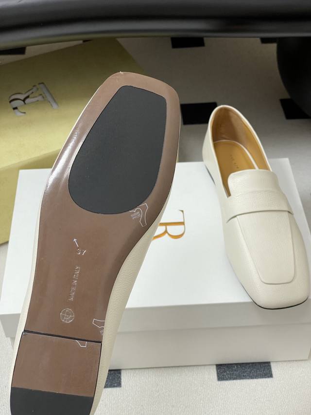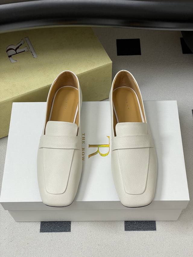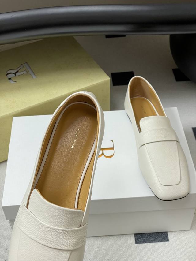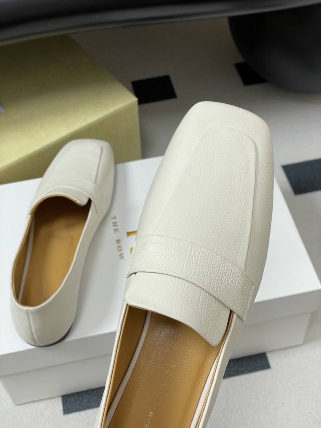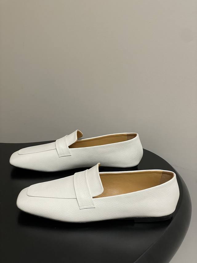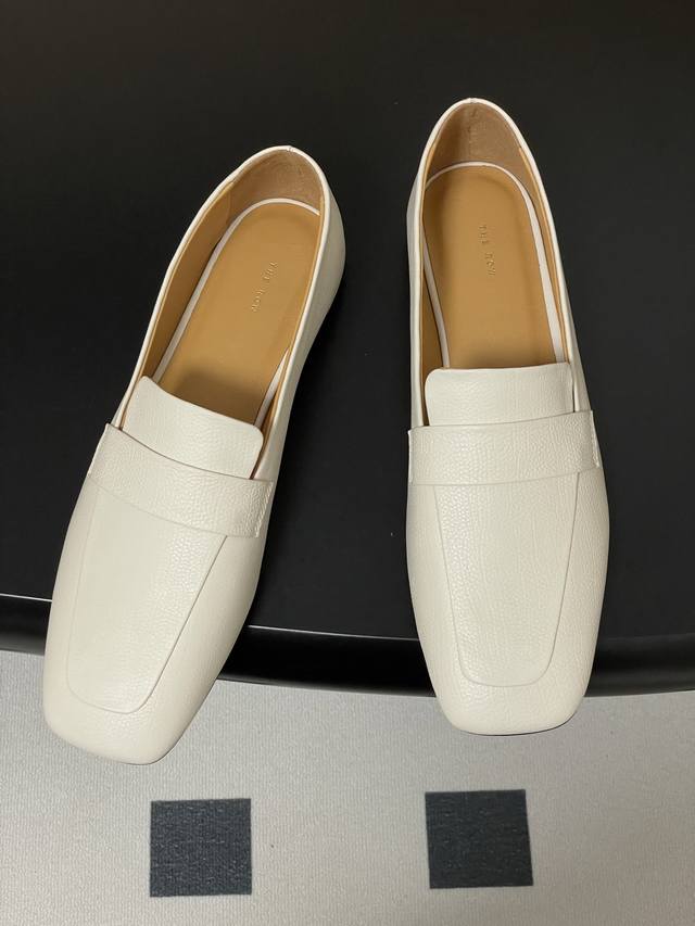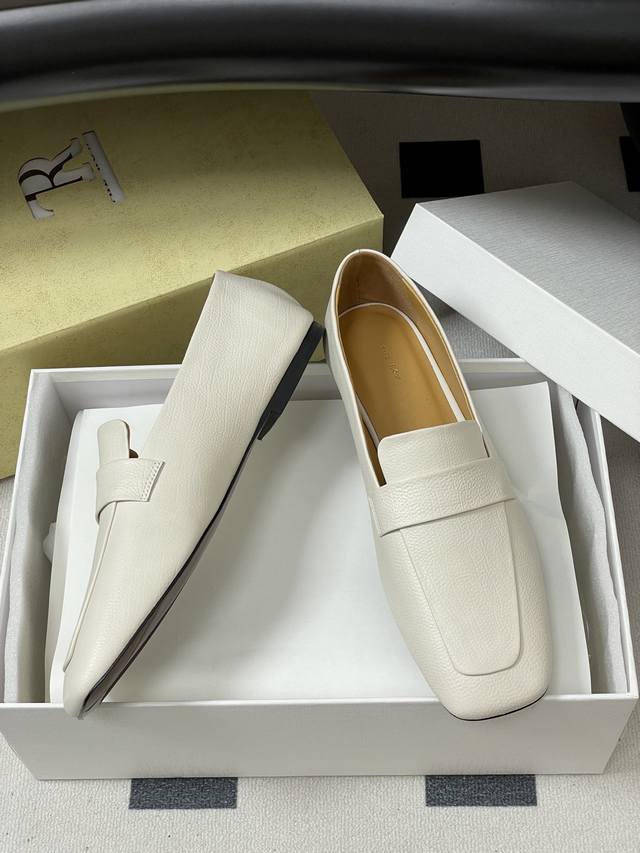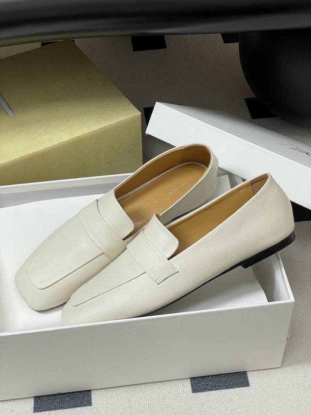 The Row 25Ss Early Autumn New Tr Square Toe Low Mouth Mule Leather Single Shoes Minimalist Flat Loafers