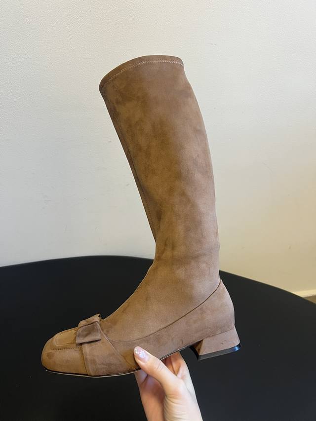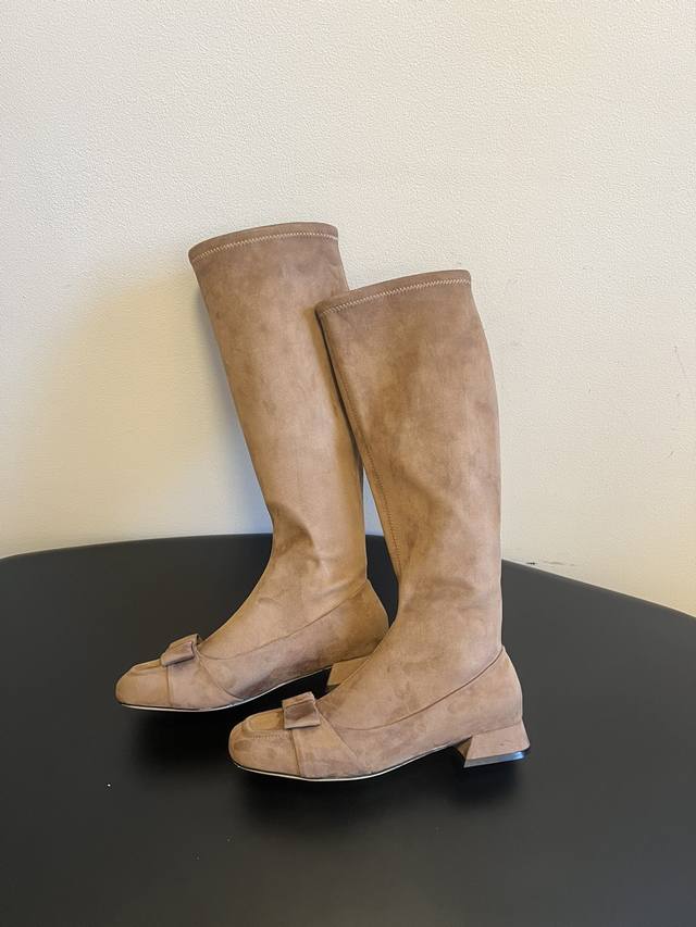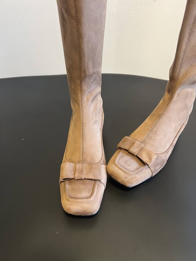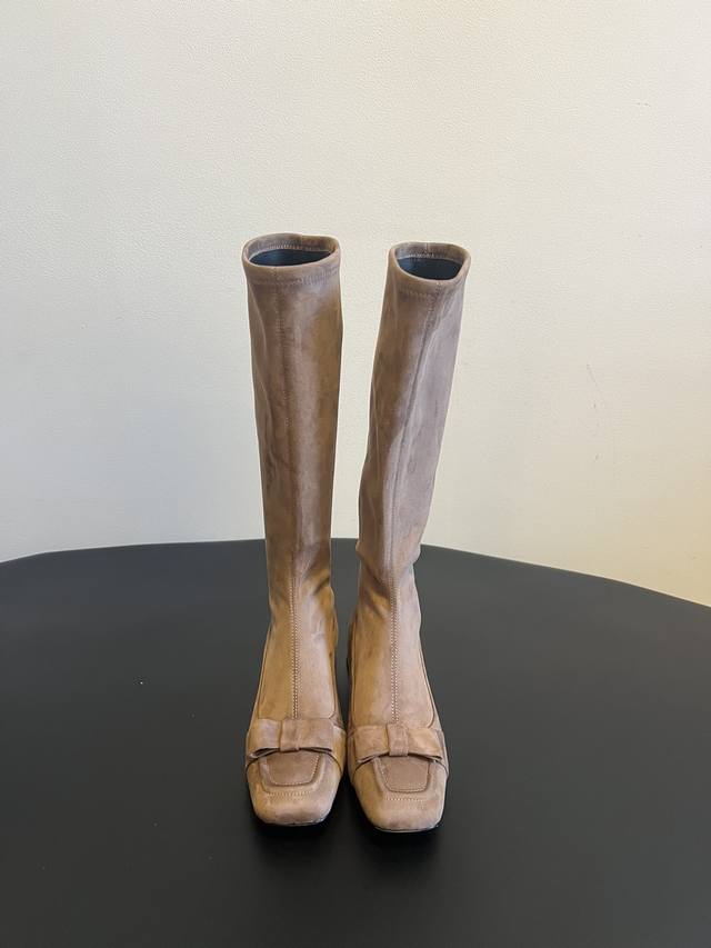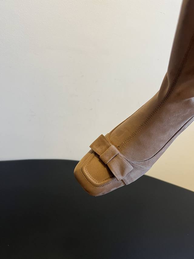 The Row 25Ss Retro Bow-Tie Knee Boots DDD Continuing the brand's "minimalist luxury" style, the boots are long and flowing, conforming to the leg lines and visually elongating the legs, easily creating a "long legs" effect. A delicate bow adorns the toe, injecting a feminine element into the minimalist design, balancing strength and elegance; the moderate boot height is suitable for pairing with various trousers and skirts. DDD Made of high-grade leather and suede, the texture is delicate and luxurious, and Italian shoemaking craftsmanship ensures a crisp shape and comfortable wear. The color selection is calm and sophisticated, versatile and timeless; the low-heel design balances comfort and style, suitable for daily commutes, casual outings, and other occasions, interpreting the brand's understated yet sophisticated fashion language. DDD Material: Stretch leather, stretch suede DDD Lining: Sheepskin DDD Outsole: Italian genuine leather outsole DDD Height increase: 4cm DDD Sizes: 35, 40 (Custom sizes 40 are non-refundable and non-exchangeable) DDD