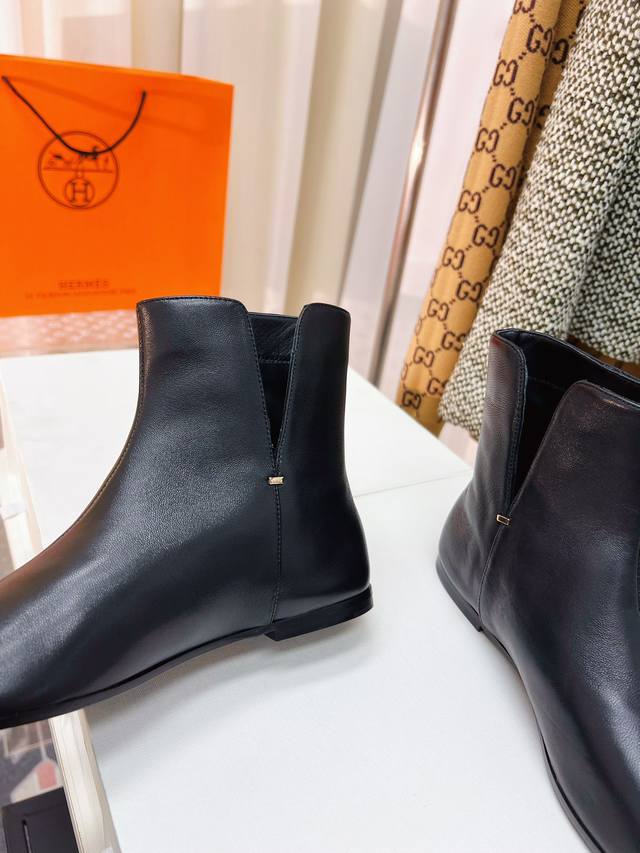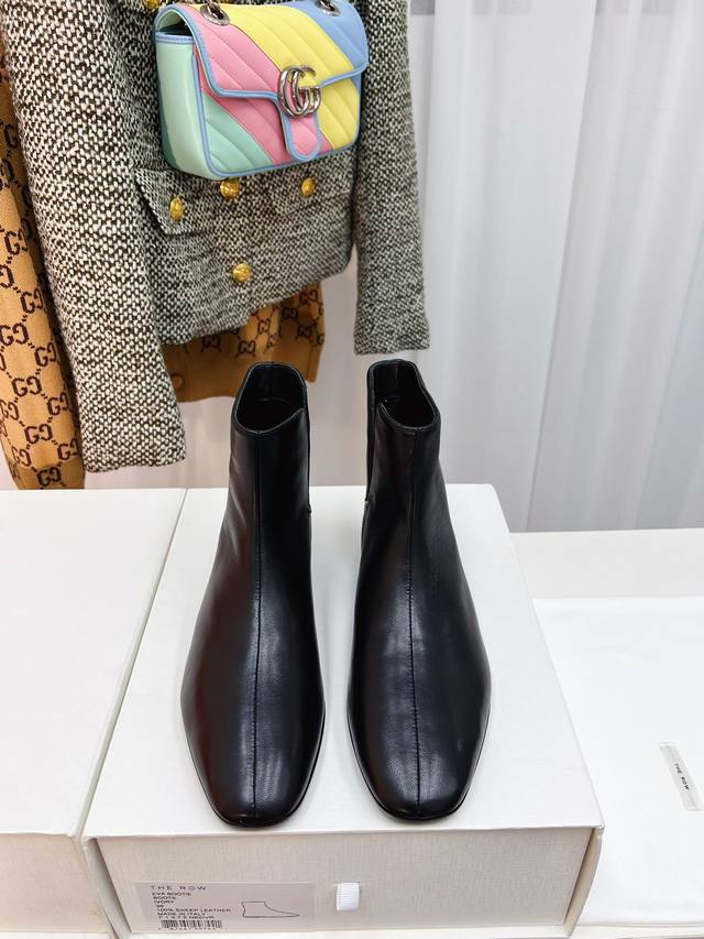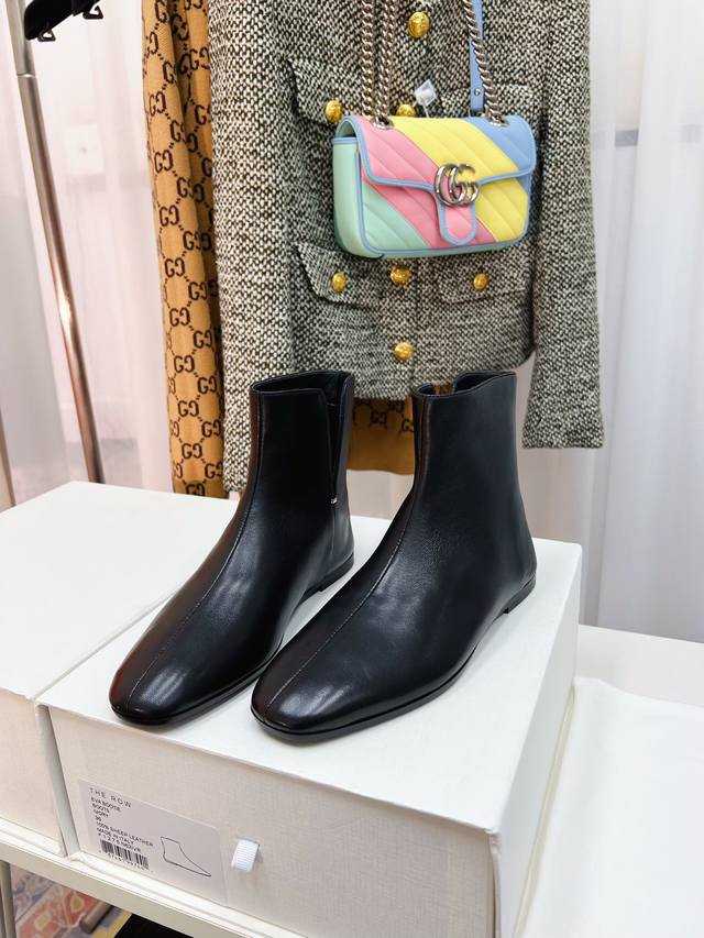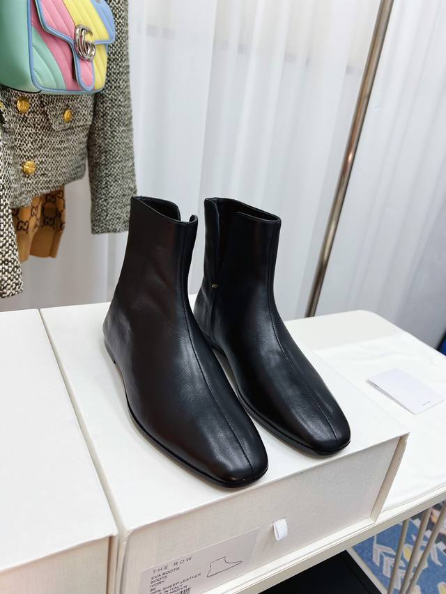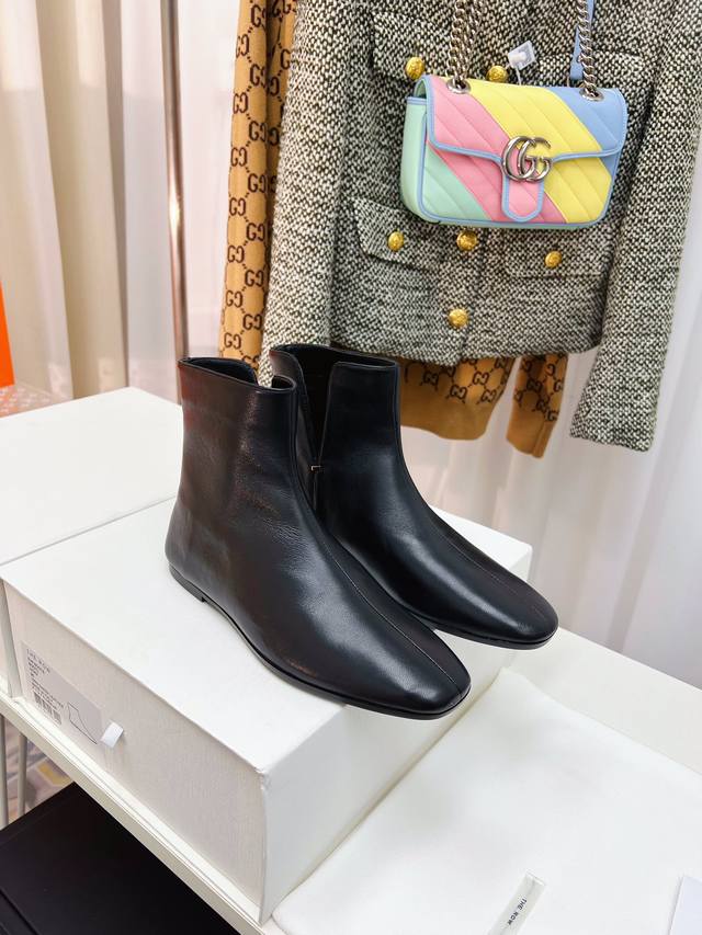 The Row Fall/Winter New Arrival Slip-On Flat Boots. The Unique Triangular Side Opening Design Is Simple Yet Fashionable, With Meticulous Craftsmanship. This Is A Must-Have Item, Incredibly Versatile And Stylish. The Original Silhouette Offers A Very Comfortable Fit And Is Easy To Wear, Exuding Elegance And Uniqueness.