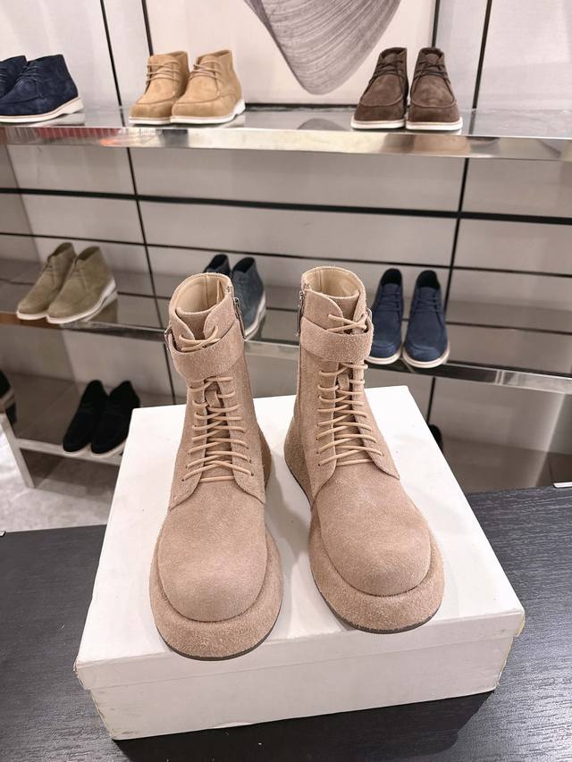 The Row Full-Length Boat Boots, 2025 Spring/Summer Newest European Style Smoked Boat Boots. Made of genuine leather. Available in black, apricot, and coffee. Two lining options: genuine leather and fox fur. Features lace-up detailing. Full-length wedge heel (2-4cm). Boot shaft height: 20cm. Sizes 35-39. Custom orders of sizes 40 and above are non-refundable and non-exchangeable. Factory price: [price missing]. Suitable season: Winter. Recommended style: Everyday.