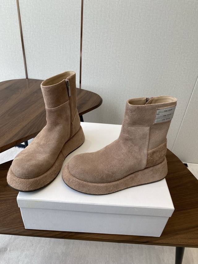 The Row genuine leather French retro round-toe minimalist, versatile flat thick-soled Chelsea boots are the most comfortable I've ever worn. They're so soft!