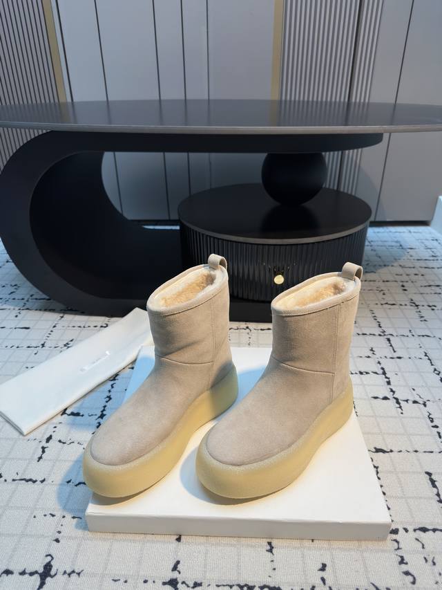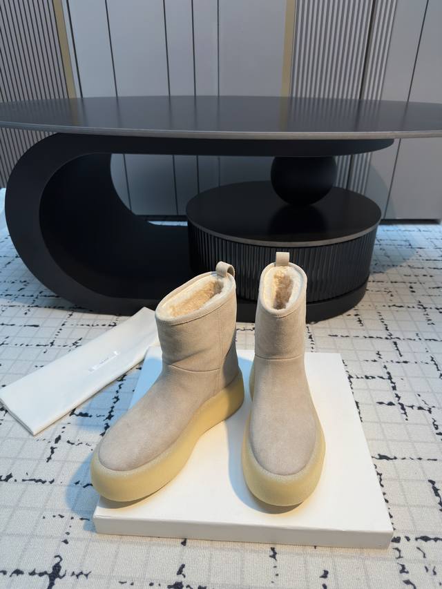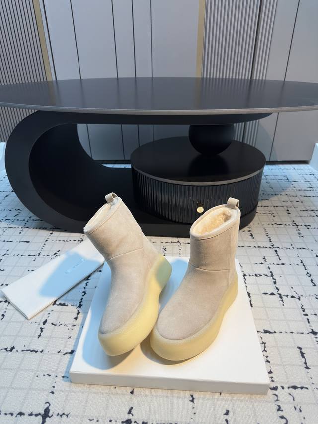 / The Row Round Toe Minimalist Versatile Slip-on Fleece-lined Ankle Boots These ar