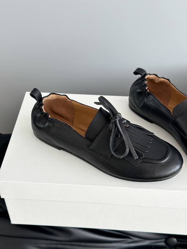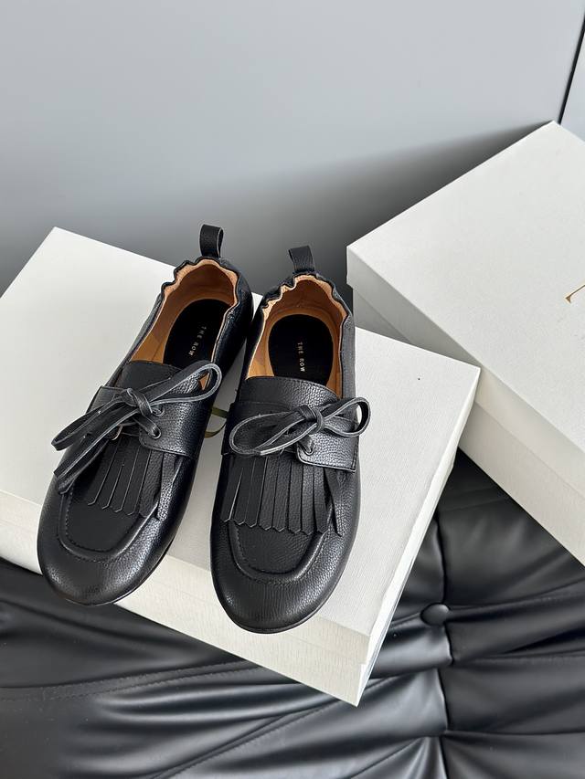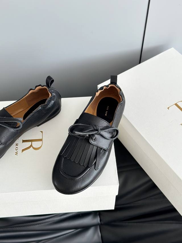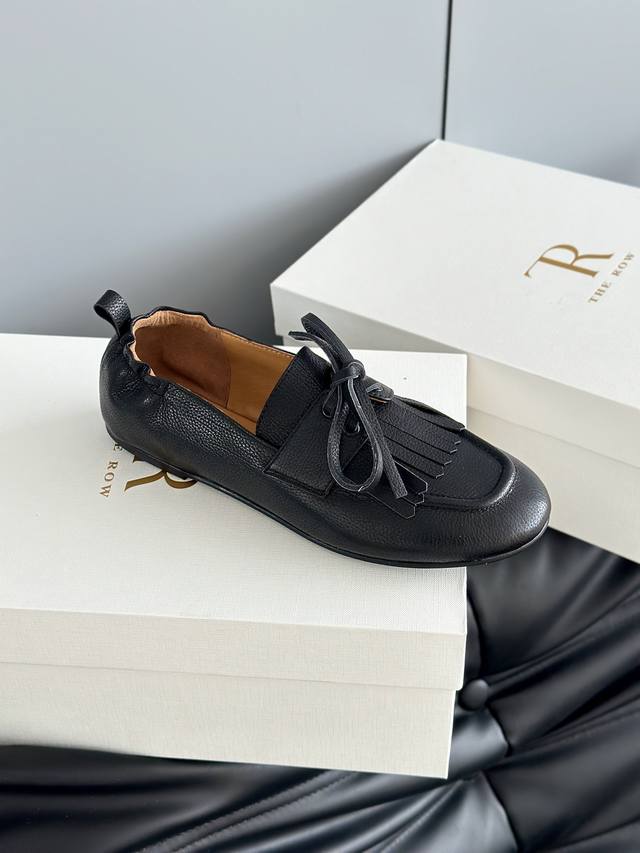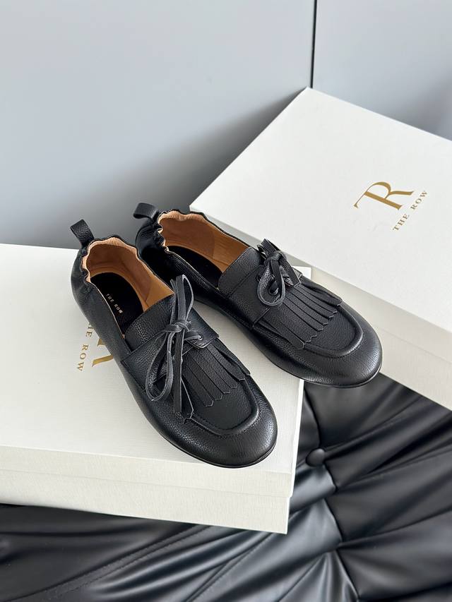 The Row Spring/Summer 2026 New Arrival Tr Tassel Lace-up Loafers Flat Ballet Flats DDD The tassel design on the upper is sweet yet sophisticated, beautiful without being monotonous, with a touch of retro sweetness, and looks good with any outfit! Very snug and beautiful, and the shoes are also extremely soft, suitable for all foot shapes, big and small, incredibly comfortable! DDD The upper is made of original lychee-patterned cowhide, the inner insole is made of sheepskin, and the outsole is made of Italian genuine leather DDD Sizes: 35, 40. Sizes 40 are custom-made, no returns or exchanges DDD