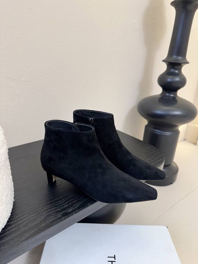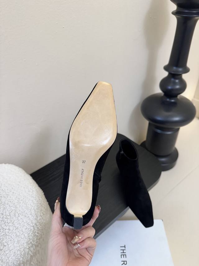 The Row25 Fall/Winter New Arrival: Square Toe Kitten Heel Ankle Boots! These ankle boots are practically sold out everywhere! The small square toe design is minimalist yet sophisticated, exuding elegance and sophistication. These ankle boots can truly be worn barefoot, suitable for all seasons and incredibly versatile. You practically don't feel the boots on your feet; they're like wearing socks, snug and comfortable against the skin. The material is incredibly soft and skin-friendly, making them unbeatable. You simply won't want to take them off! The upper is made of imported mixed sheepskin suede. The insole is made of original suede, soft and skin-friendly. It features an Italian imported genuine leather outsole. Heel height: approx. 4.5cm. Sizes: 35-41. Sizes 40 and 41 are non-refundable and non-exchangeable.